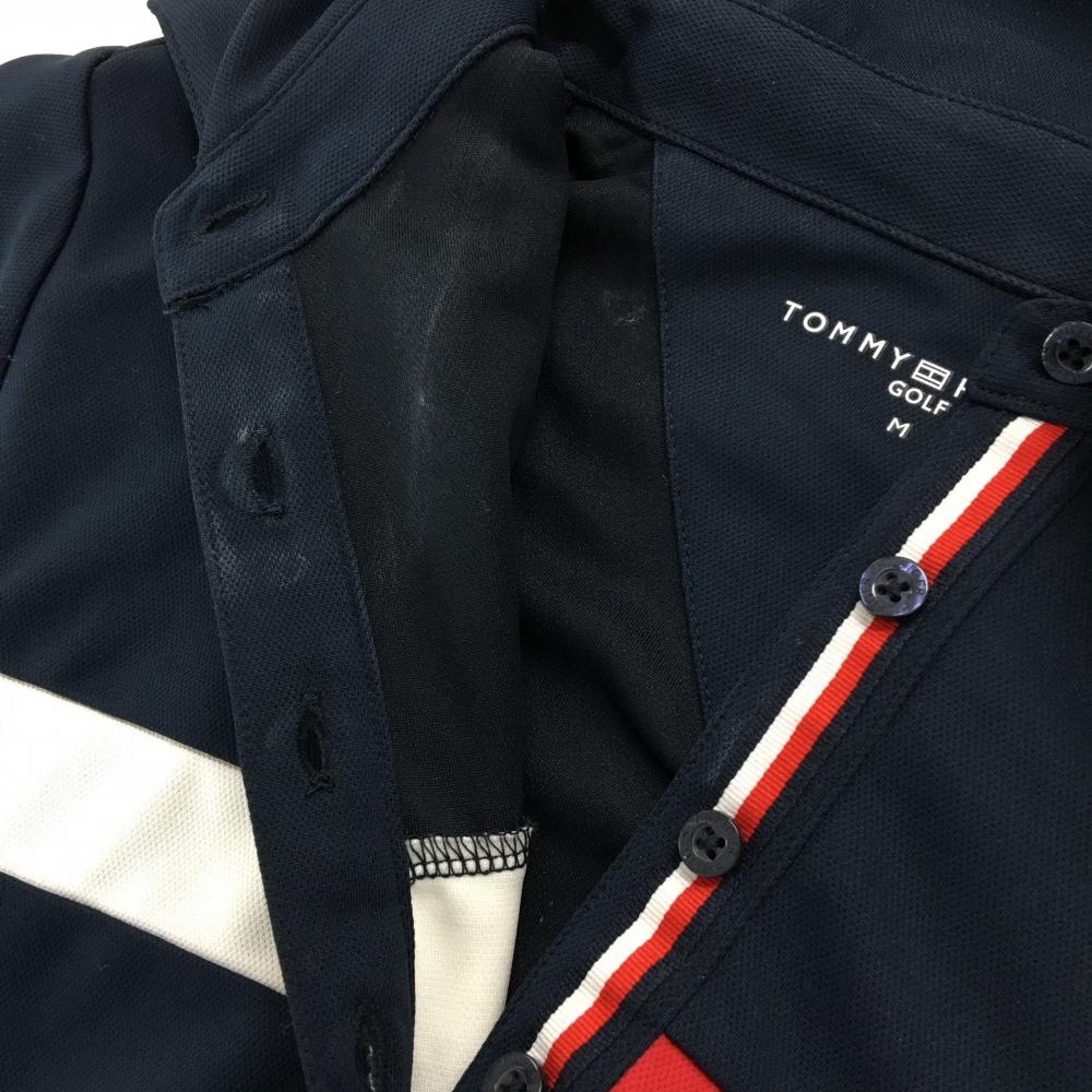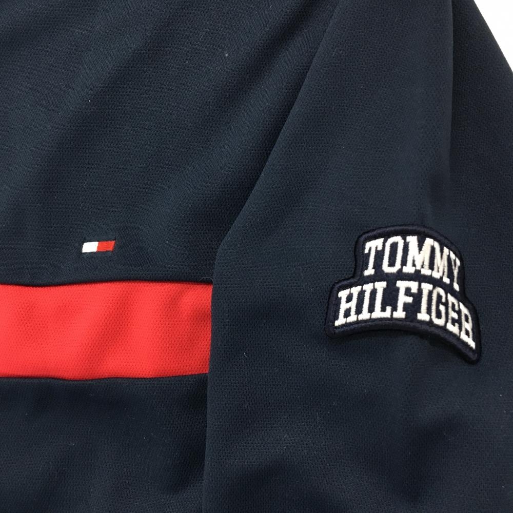 トミーヒルフィガーゴルフ 長袖ポロシャツ ネイビー×レッド 胸元ライン 袖ワッペン レディース M ゴルフウェア Tommy Hilfiger Golf