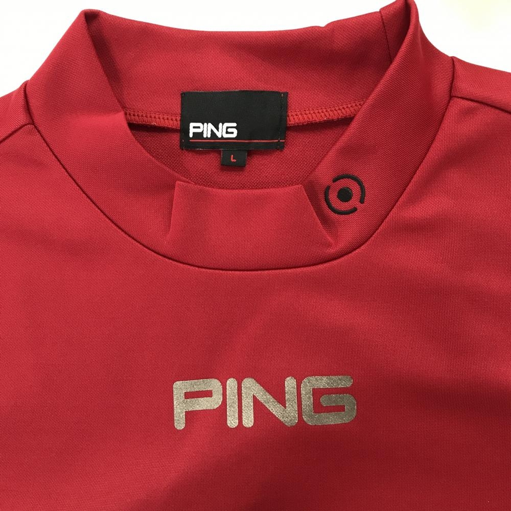 【美品】ピン 長袖ハイネックシャツ レッド ロゴプリント レディース L ゴルフウェア PING