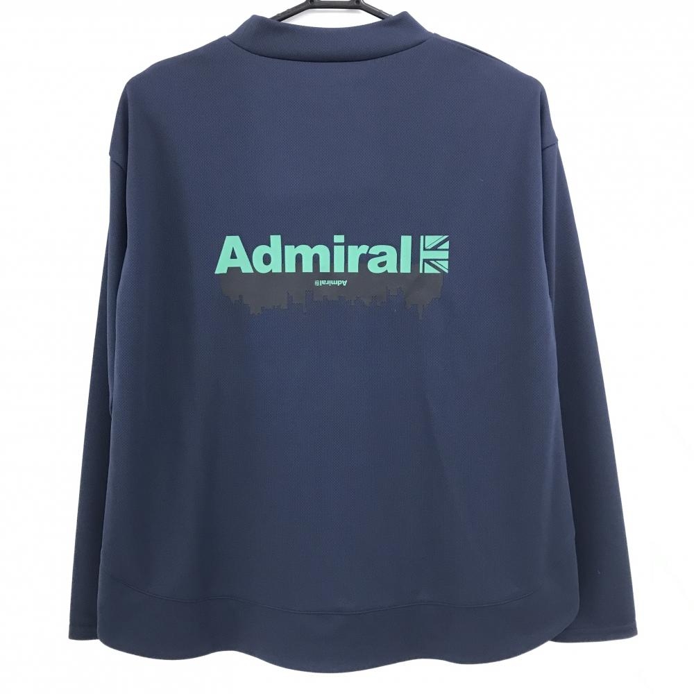 【超美品】アドミラル 長袖ハイネックシャツ ネイビー ロゴグリーン レディース L ゴルフウェア Admiral