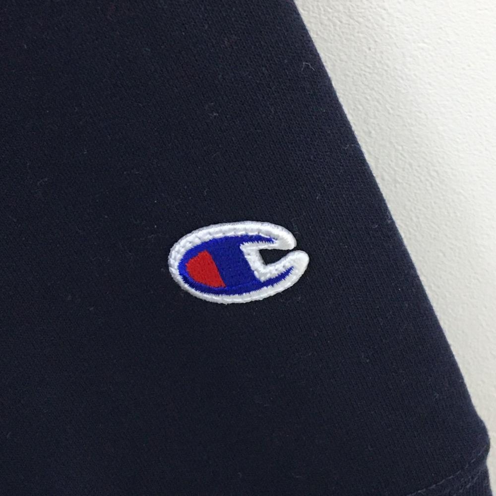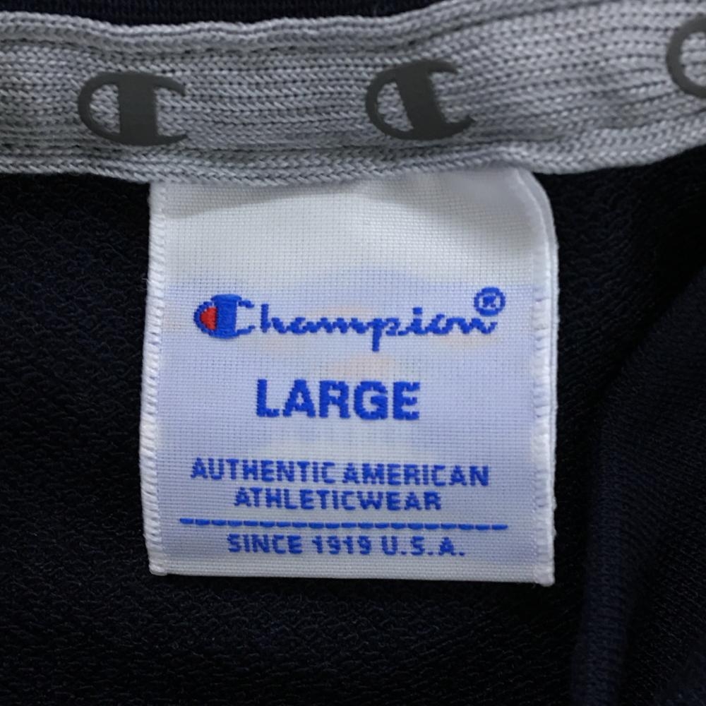 【超美品】チャンピオン 長袖ハイネックシャツ ネイビー×ライトブルー ロゴプリント 袖ワッペン レディース LARGE ゴルフウェア Champion
