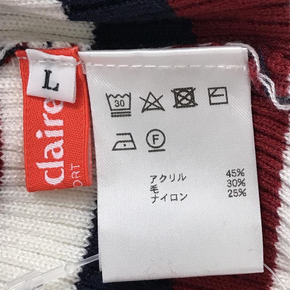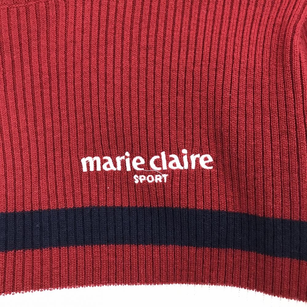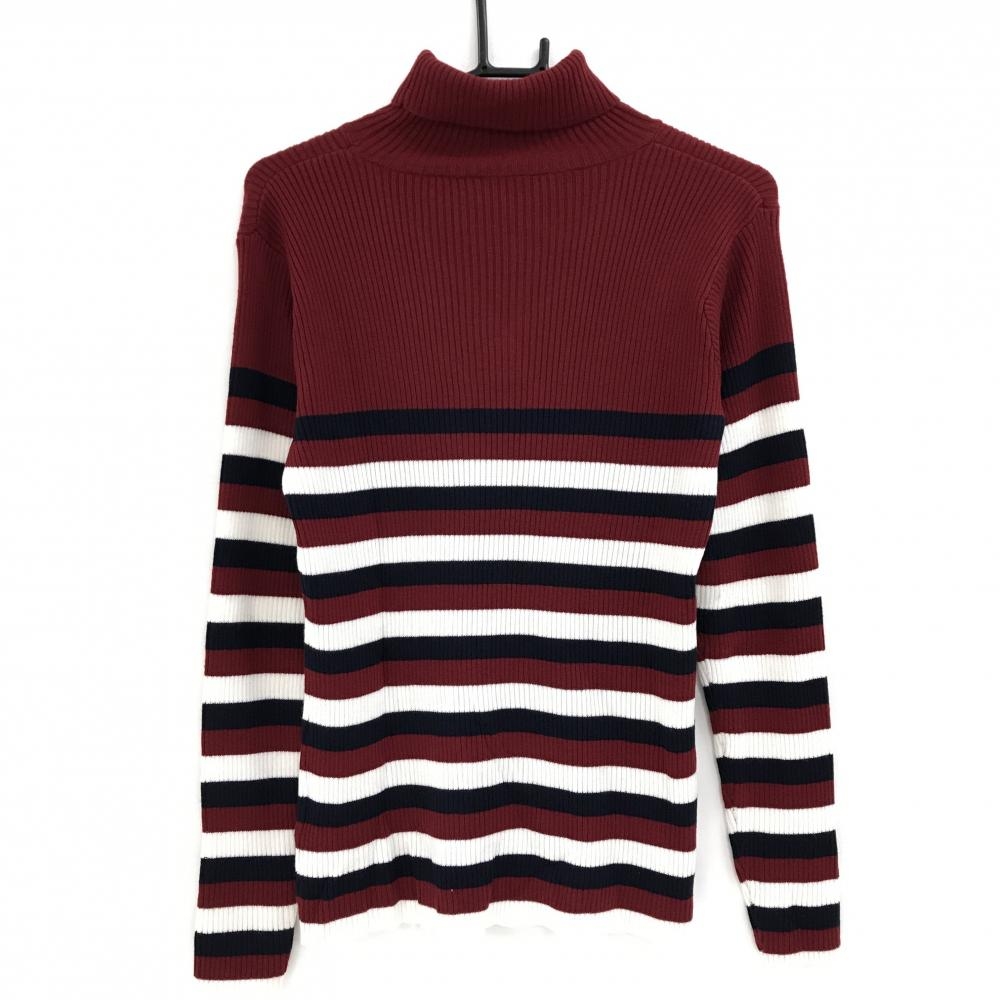 【超美品】マリクレールスポール タートルネックセーター ボルドー×白 ボーダー ロゴ刺しゅう レディース L ゴルフウェア marie claire