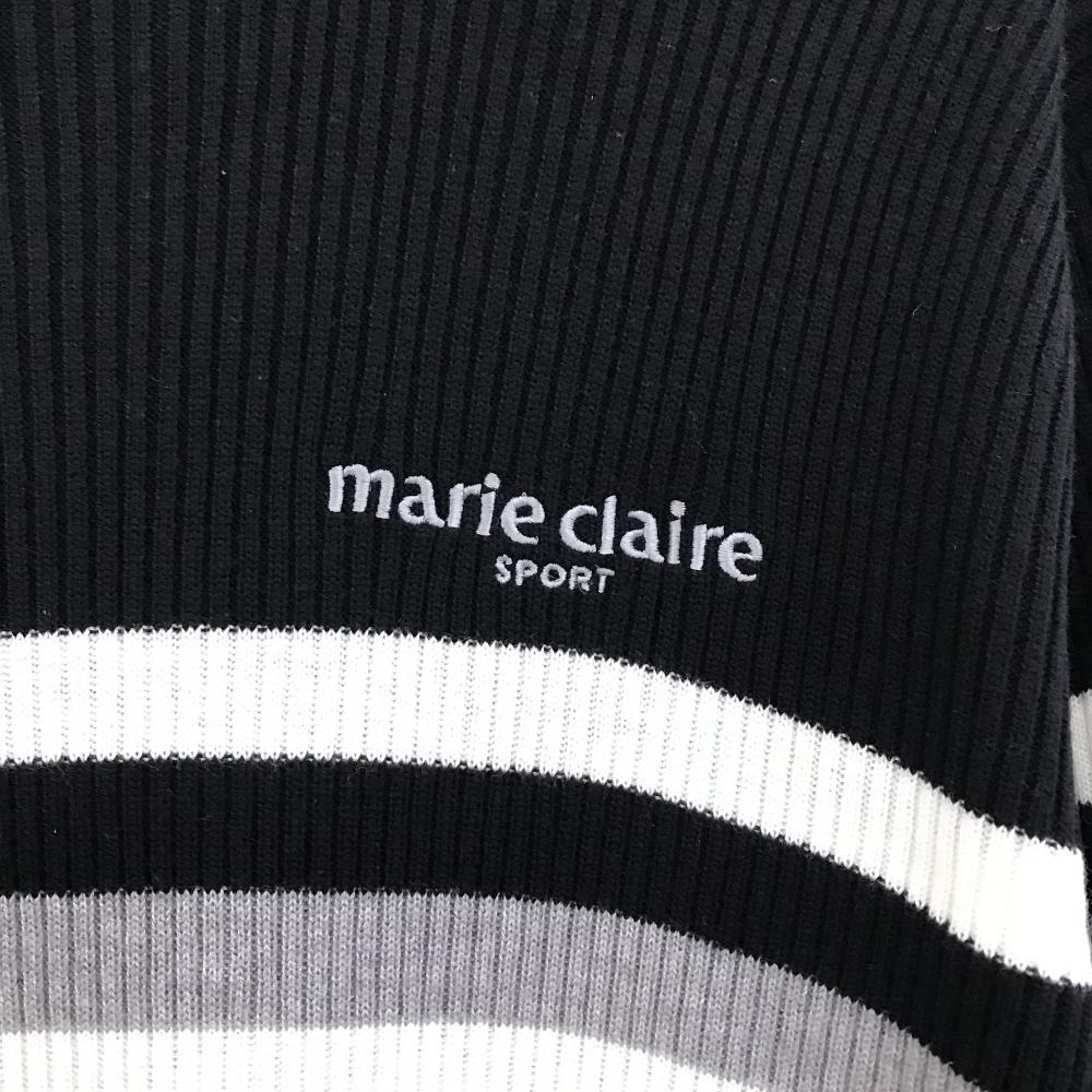 【超美品】マリクレールスポール タートルネックセーター 黒×白 ボーダー柄 ロゴ刺しゅう レディース L ゴルフウェア marie claire