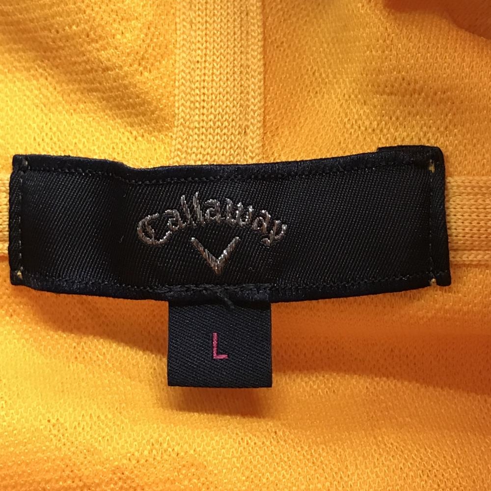 【超美品】キャロウェイ ジップパーカー オレンジイエロー×白 総柄地模様 凸凹生地 ロゴ刺しゅう レディース L ゴルフウェア Callaway