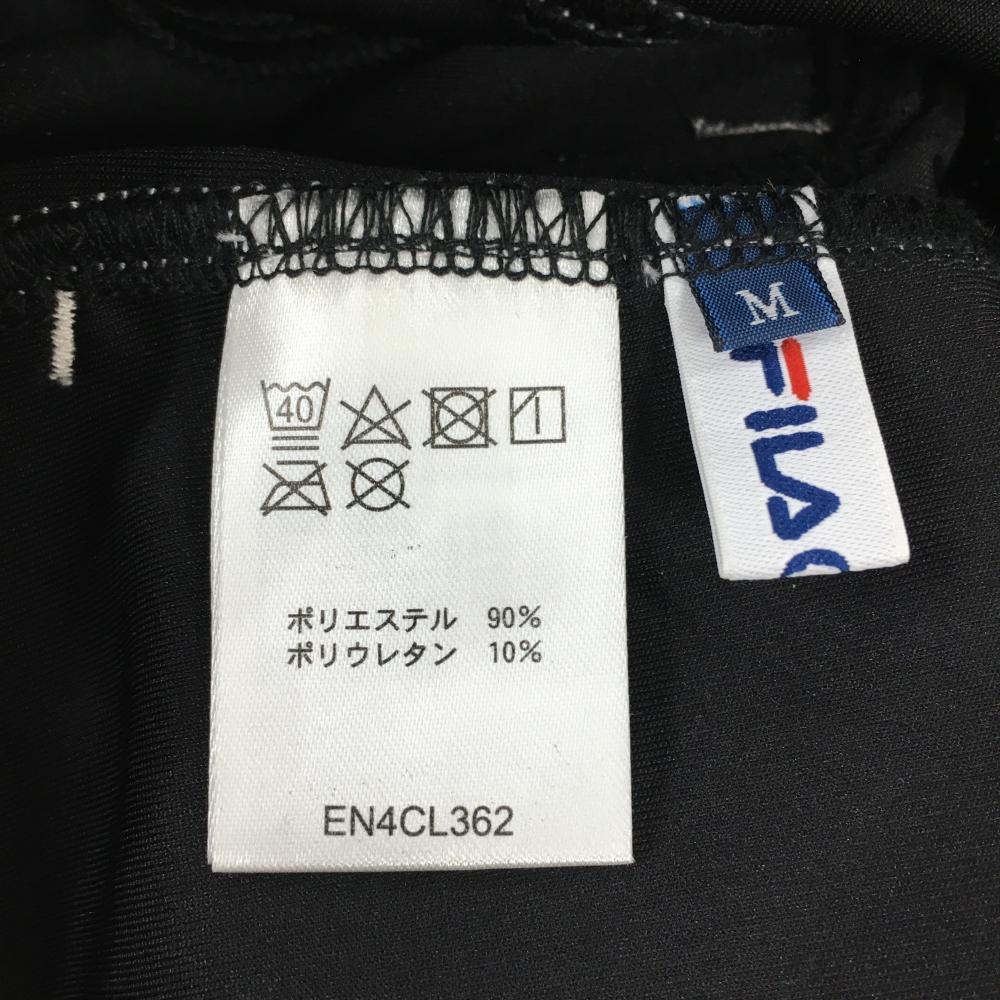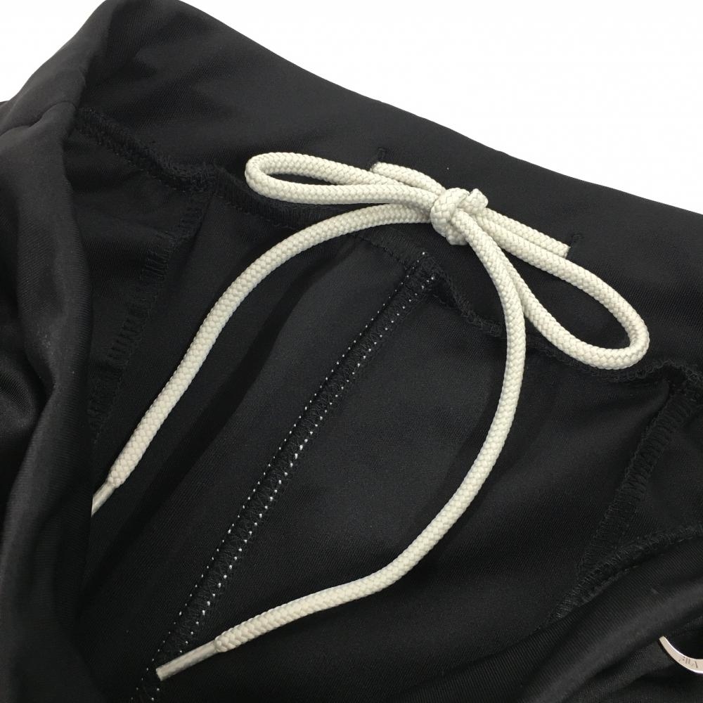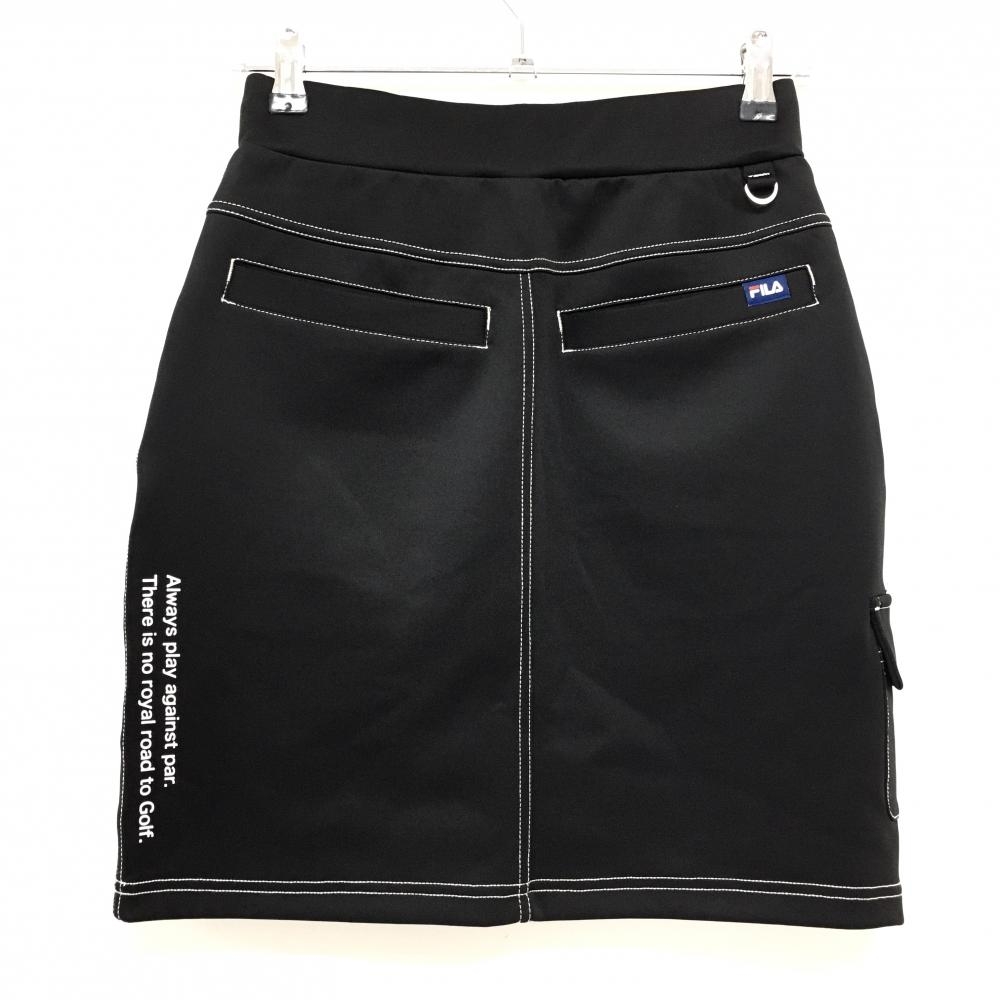 【超美品】フィラゴルフ スカート 黒×白 ロゴプリント ステッチ ウエストゴム 調節紐 ストレッチ レディース M ゴルフウェア FILA GOLF