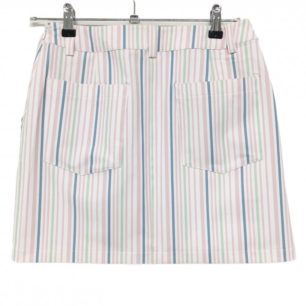 【超美品】キャロウェイ スカート ピンク×白 ストライプ ロゴ刺しゅう レディース M ゴルフウェア Callaway