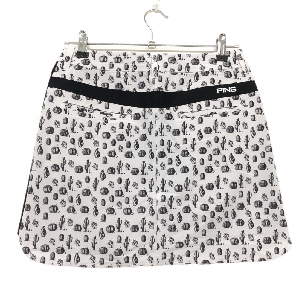 【超美品】ピン スカート ライトグレー×黒 サボテン柄 薄手 バックロゴ レディース M ゴルフウェア PING