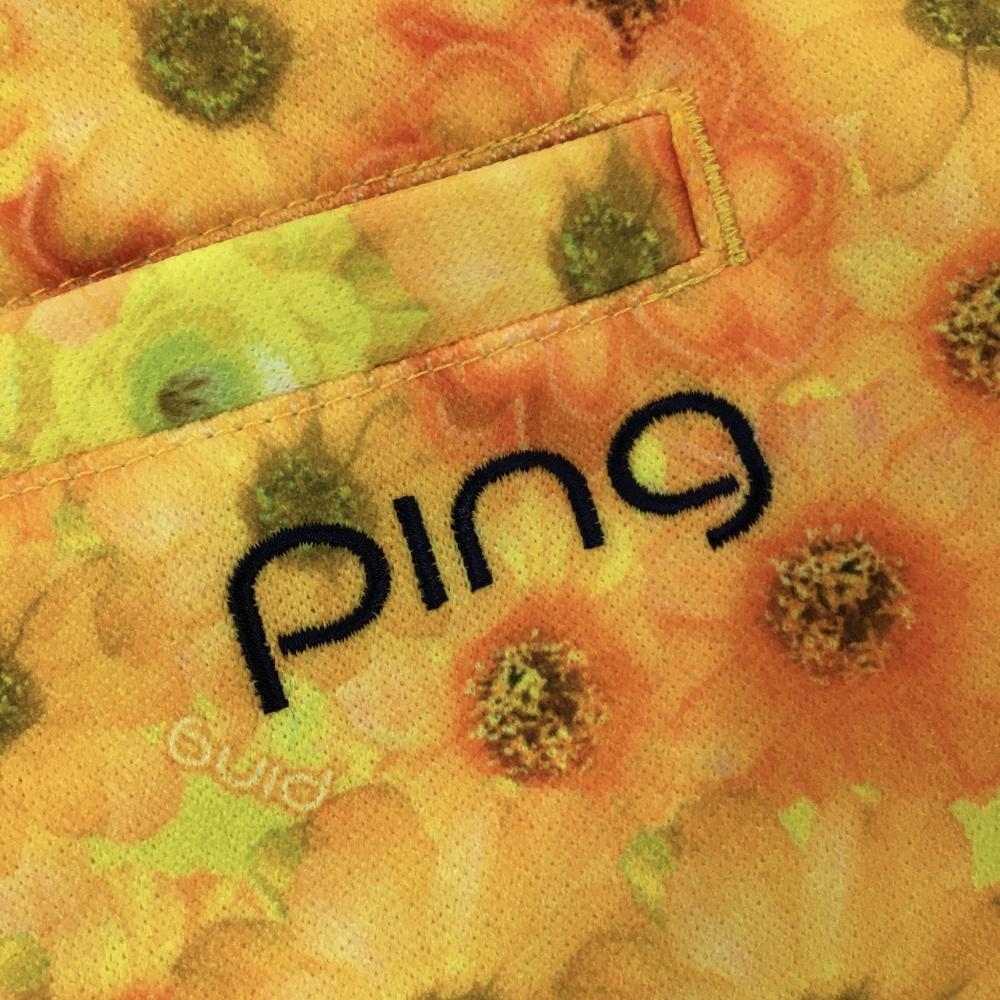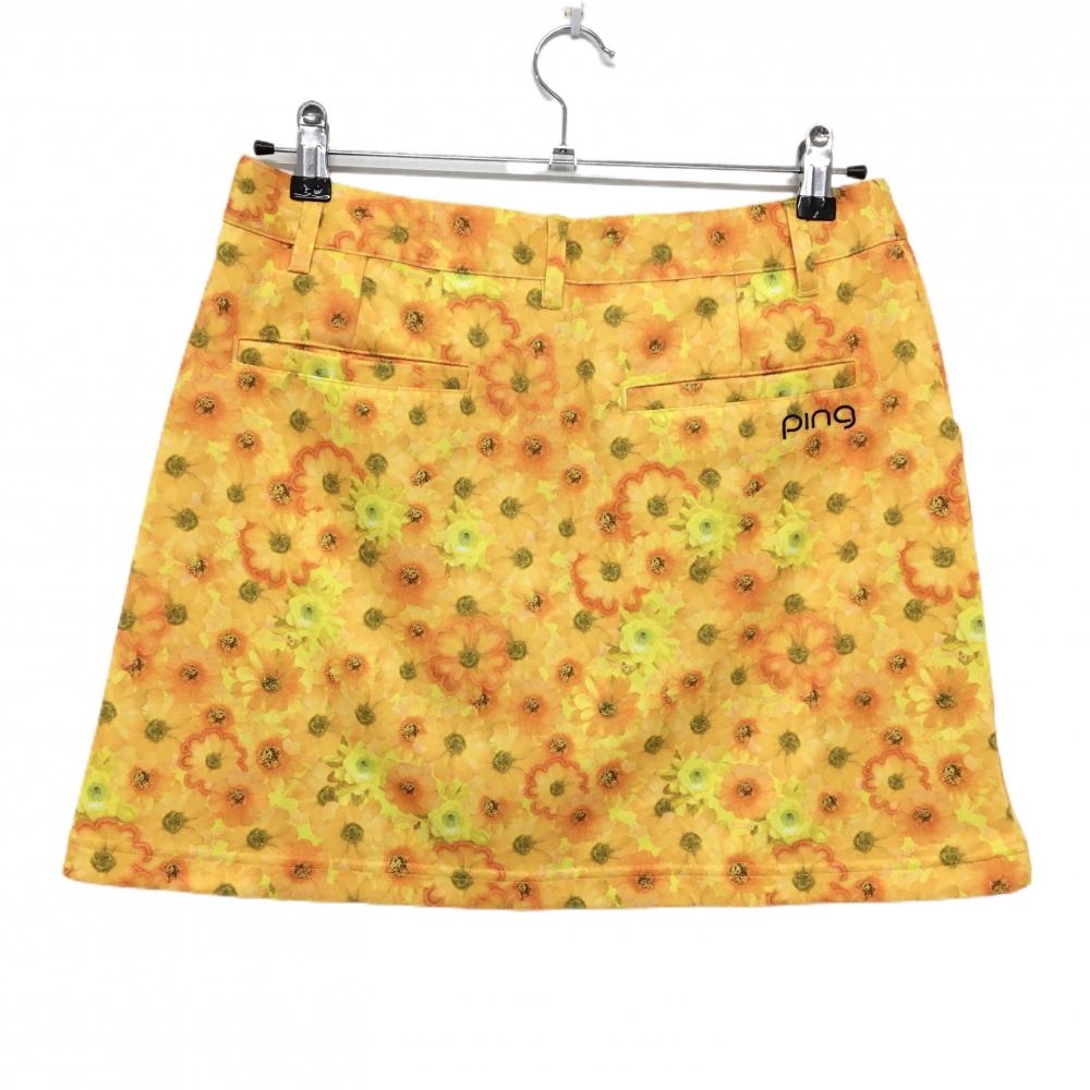 【超美品】ピン スカート イエロー×オレンジ 花柄 ロゴ刺しゅう レディース L ゴルフウェア PING