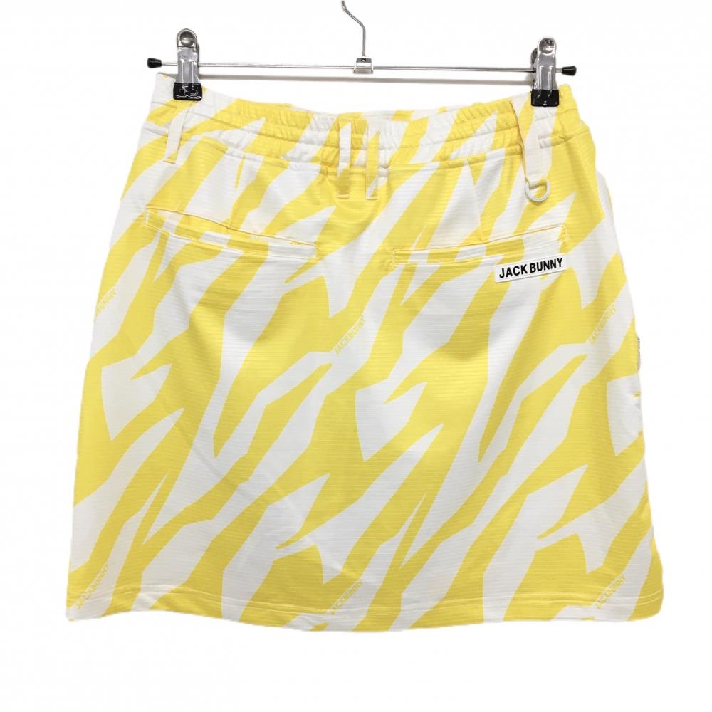 【美品】ジャックバニー スカート 白×イエロー 稲妻風総柄 ボーダー調織生地 レディース 2(L) ゴルフウェア Jack Bunny