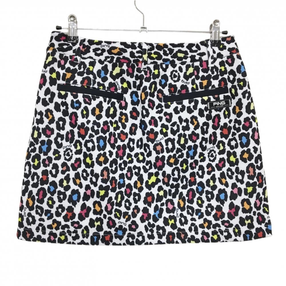 【美品】ピン スカート 白×黒 レオパード柄 ロゴ刺しゅう レディース L ゴルフウェア PING
