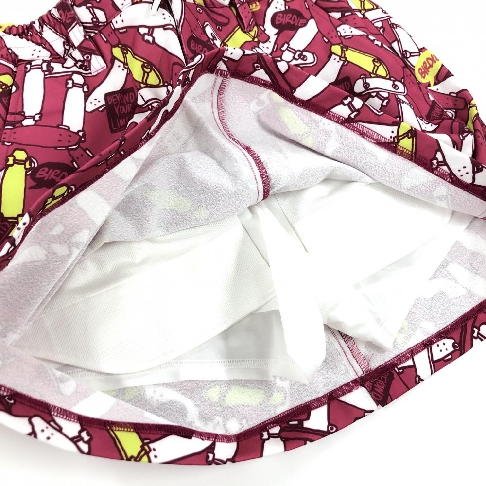 【超美品】ジャックバニー スカート パープルレッド×白 スケボー総柄 ウエストゴム 調節紐 レディース 2(L) ゴルフウェア Jack Bunny