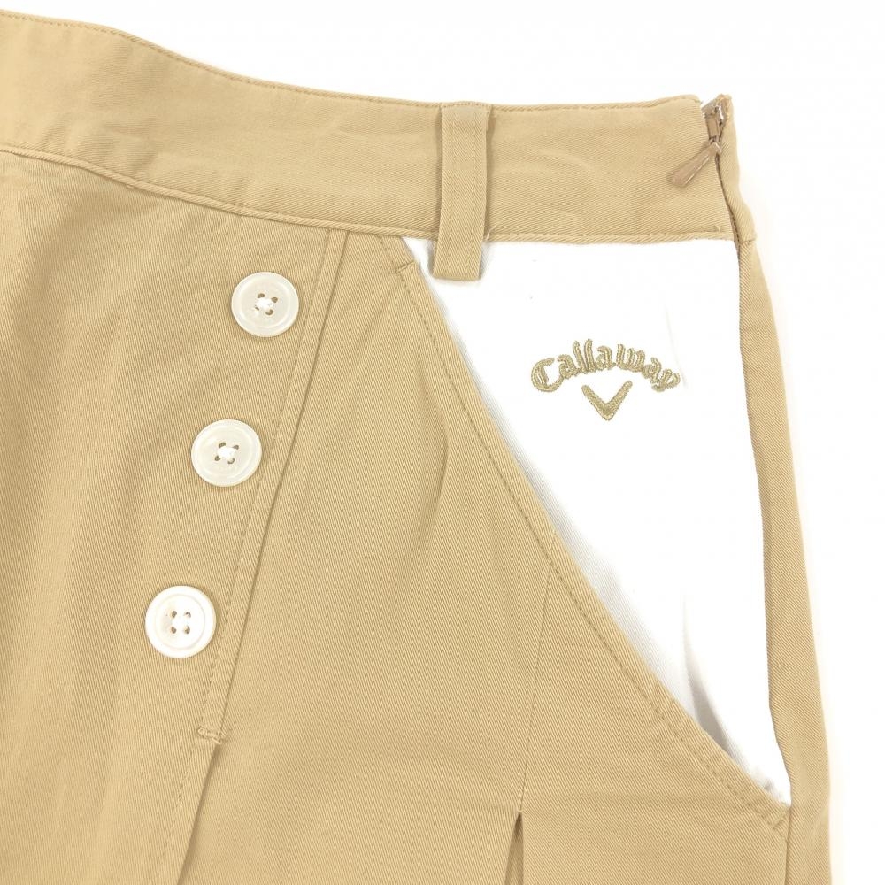 キャロウェイ スカート ベージュ×白 ロゴ刺しゅう 一部プリーツ レディース L ゴルフウェア Callaway
