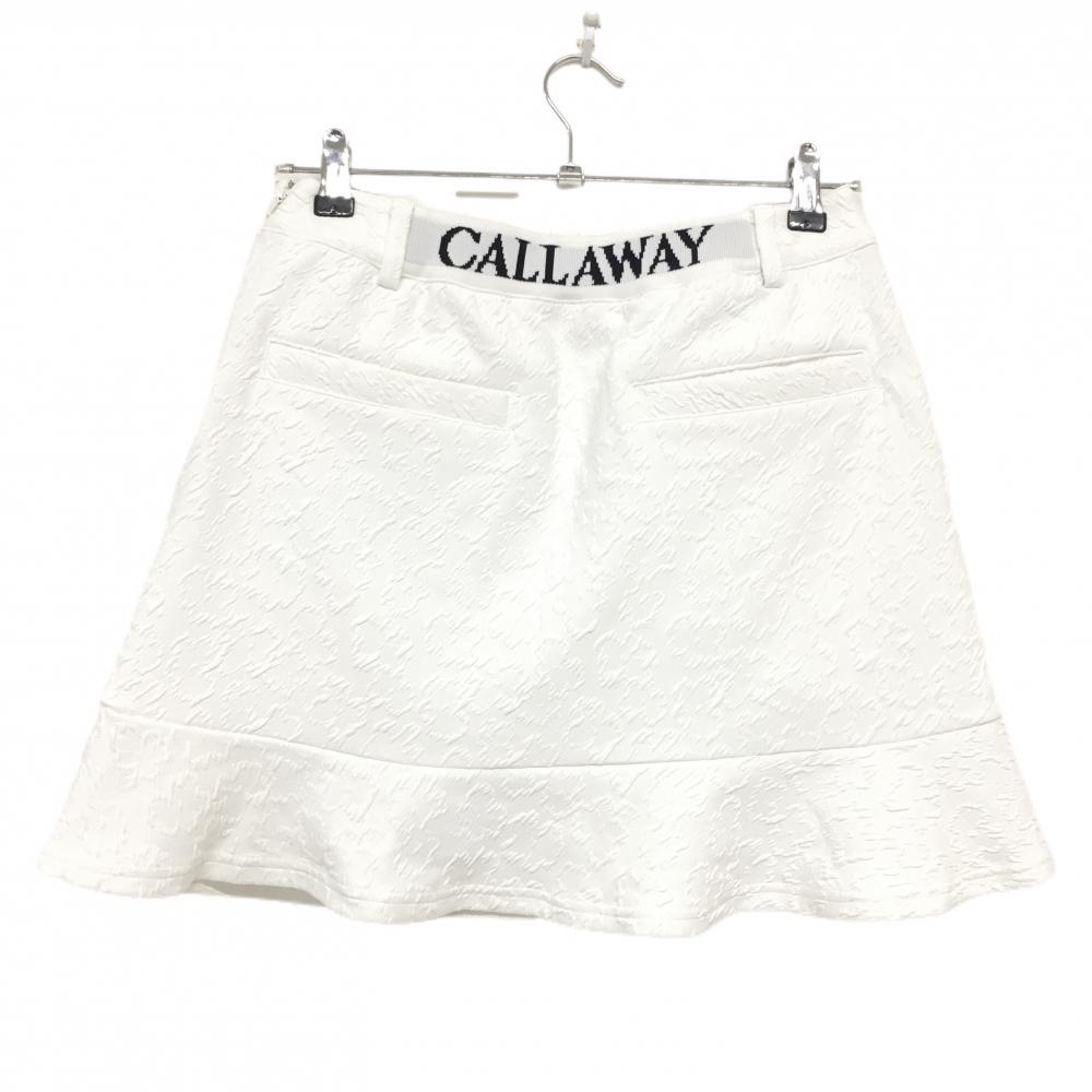 【超美品】キャロウェイ スカート 白×ネイビー 総柄地模様 凸凹生地 裾フリル レディース L ゴルフウェア Callaway