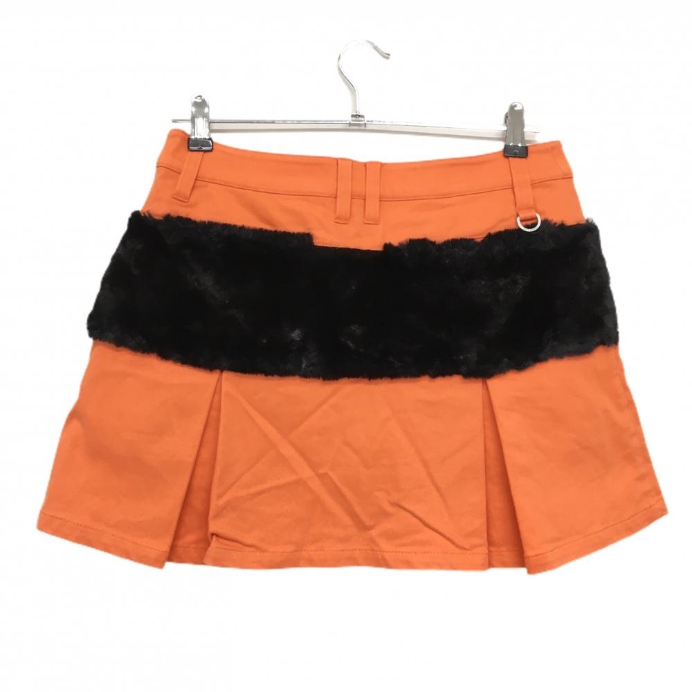 ジャックバニー ボックスプリーツスカート オレンジ×黒 後ろ一部ボア 裏微起毛 レディース 2(L) ゴルフウェア Jack Bunny