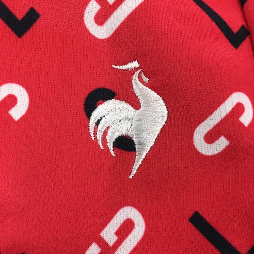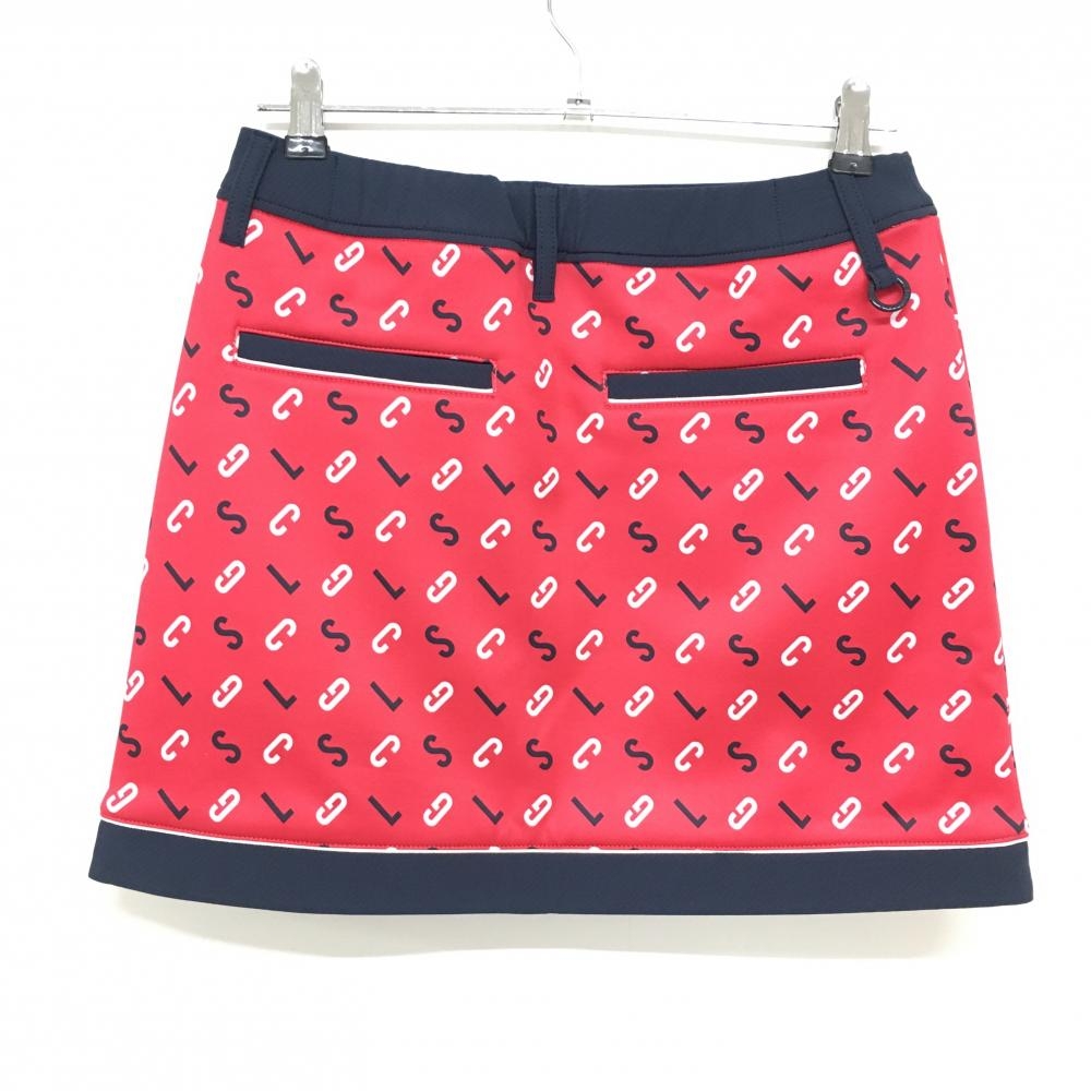 【超美品】ルコックゴルフ スカート レッド×ネイビー 英字総柄 裏起毛 裾ロゴ レディース L ゴルフウェア le coq sportif