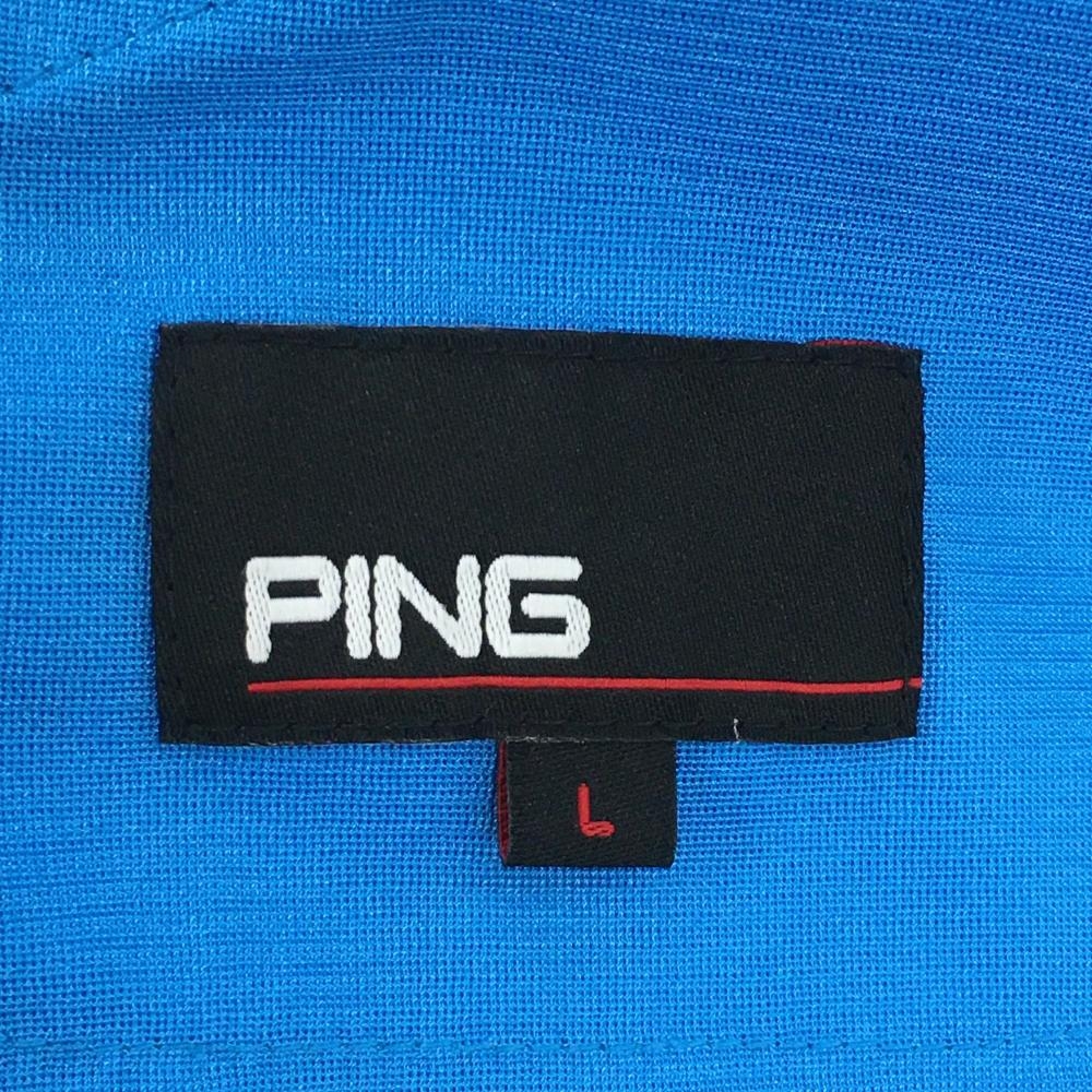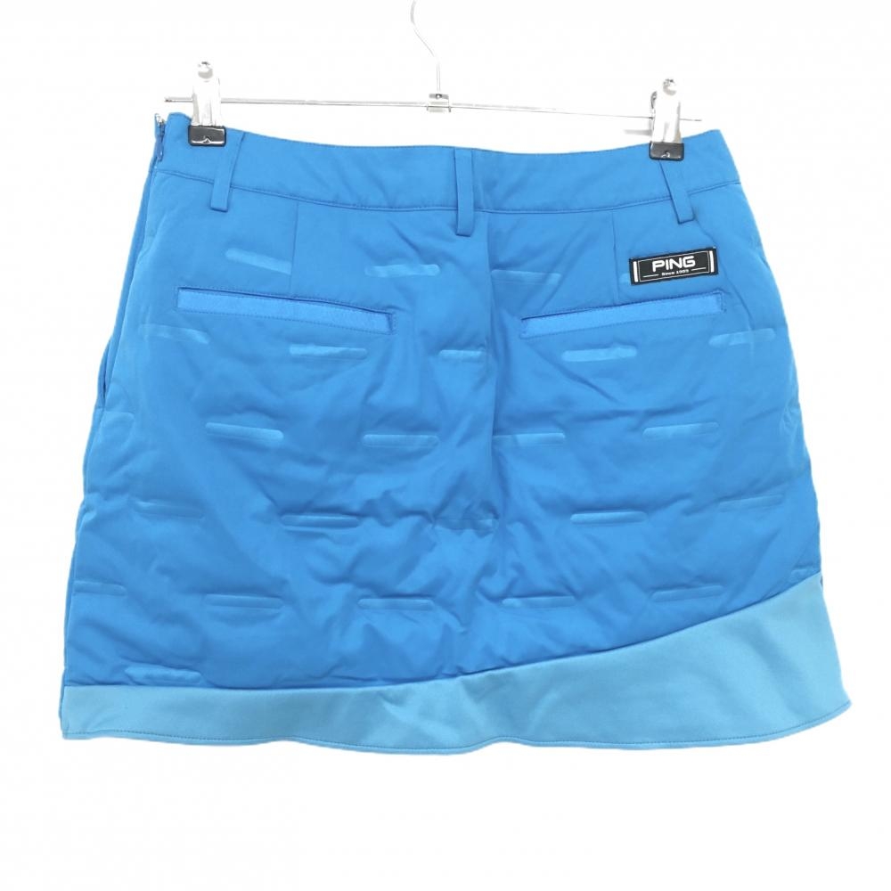 【美品】ピン 中綿スカート ブルー系 総柄 ロゴ白 レディース L ゴルフウェア PING