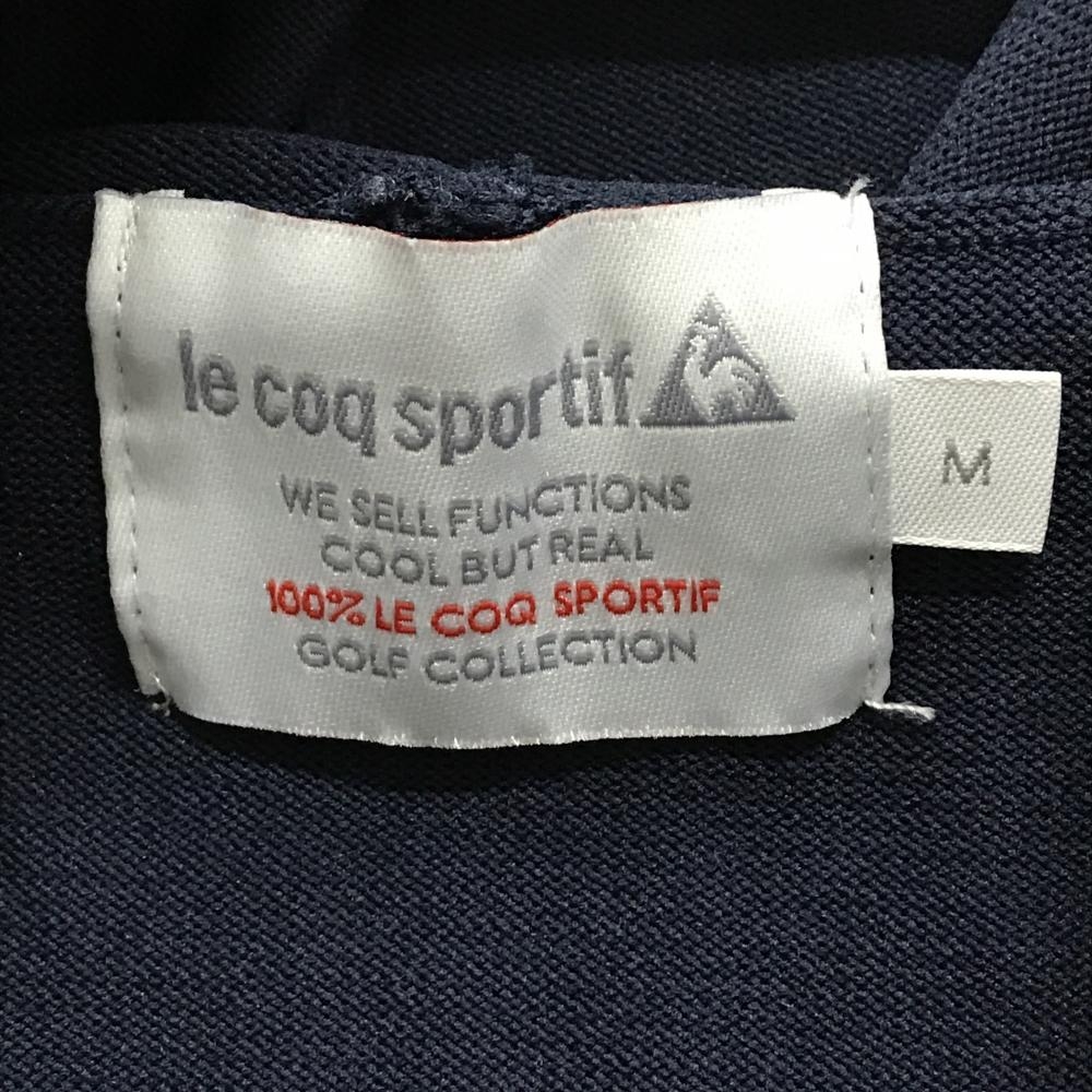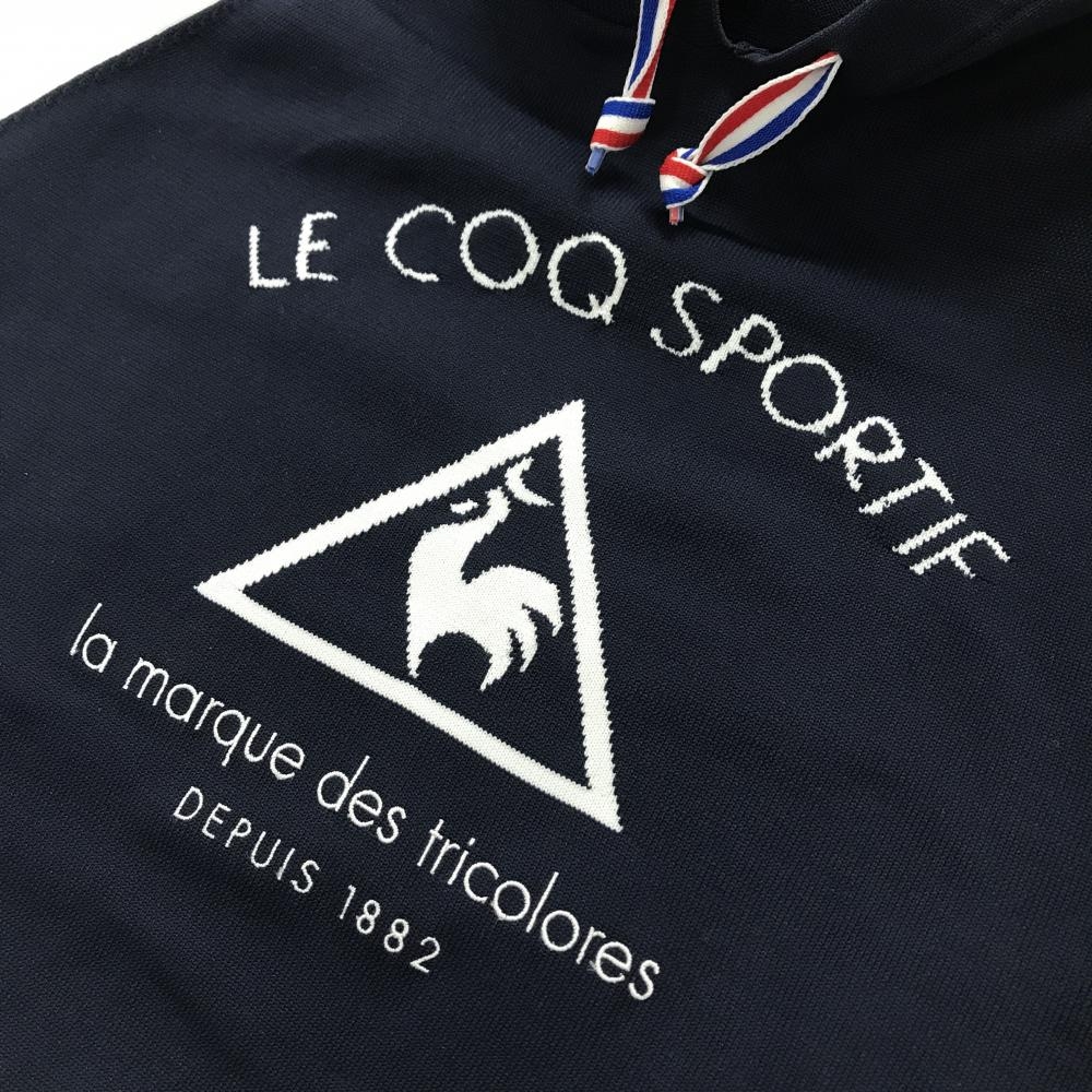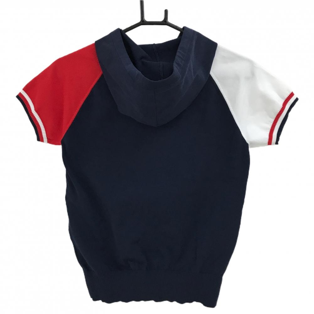 【超美品】ルコックゴルフ 半袖ニットパーカー ネイビー×レッド フロントロゴ セーター レディース M ゴルフウェア le coq sportif