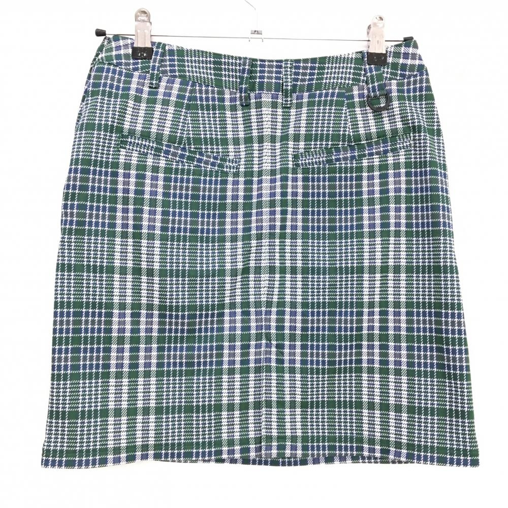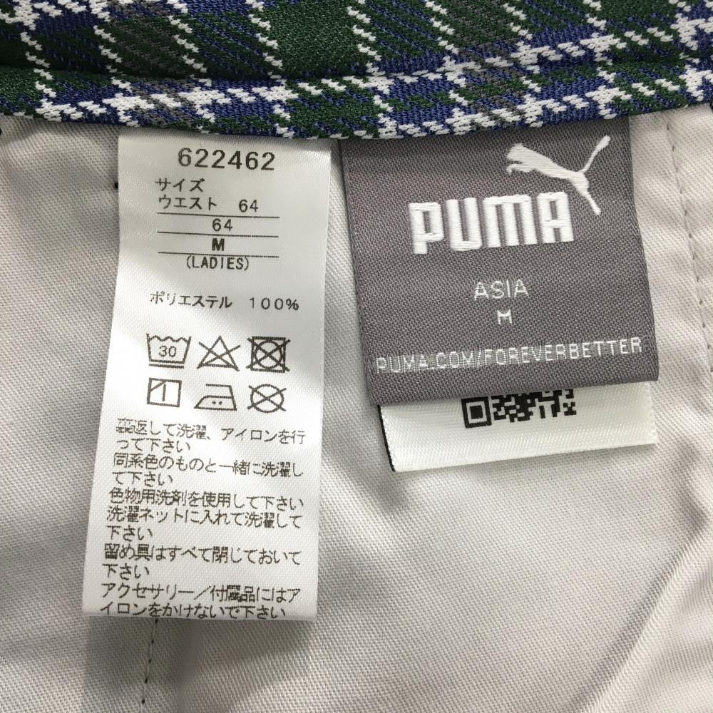 【超美品】プーマ スカート グリーン×白 チェック柄 裾ロゴ レディース M ゴルフウェア PUMA
