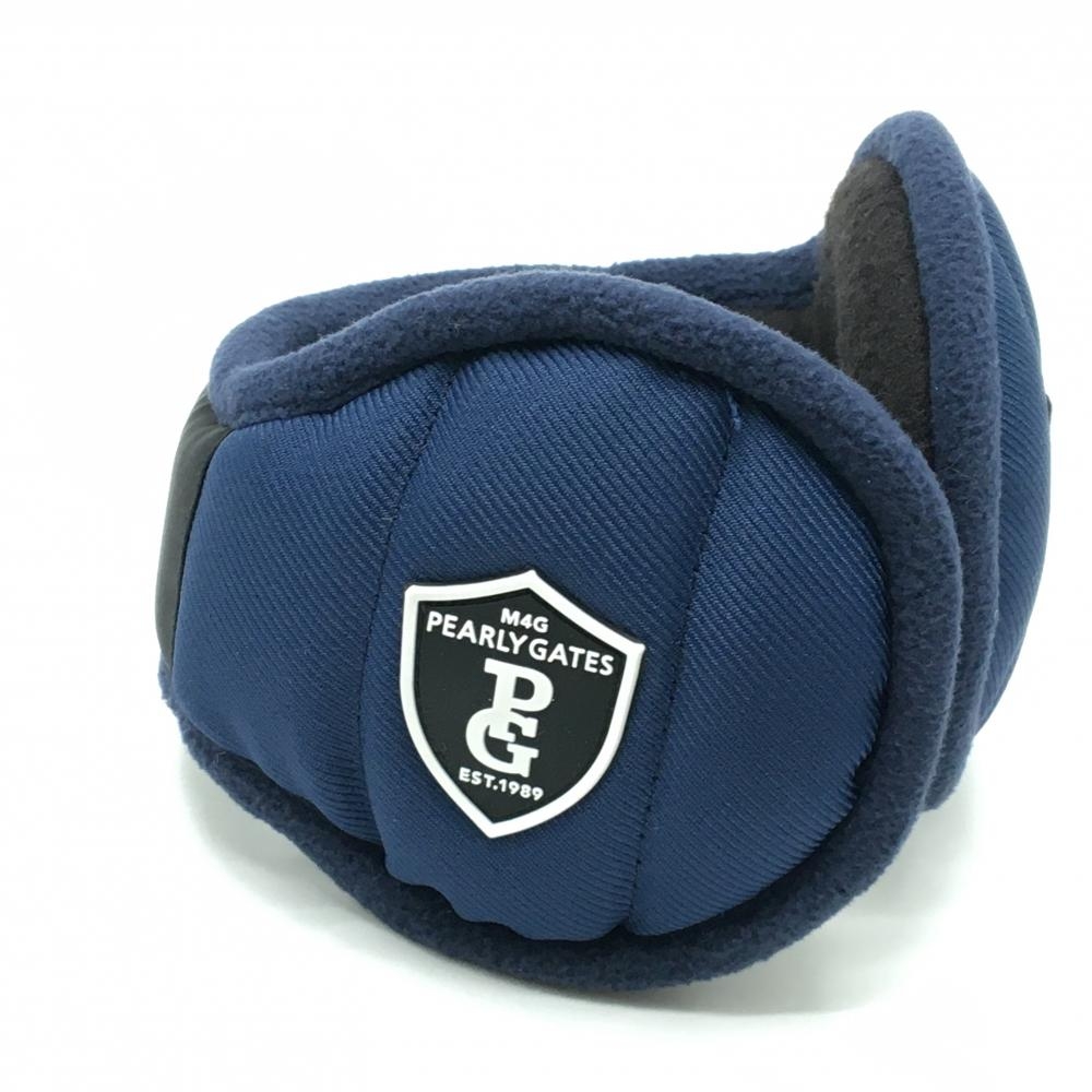 【超美品】パーリーゲイツ イヤーマフ ネイビー×黒 シリコンワッペン 耳当て ゴルフ PEARLY GATES