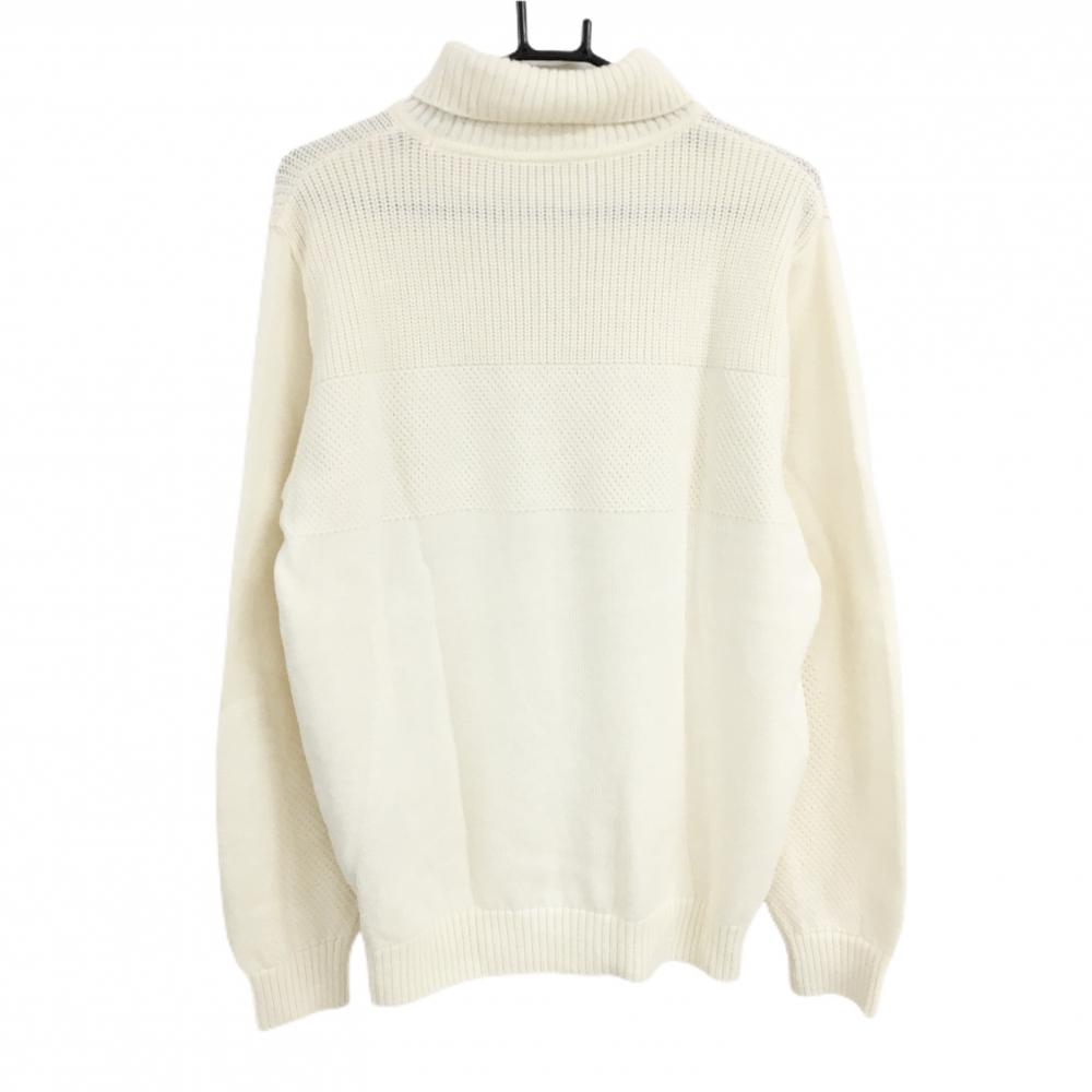 【超美品】ニューバランスゴルフ タートルネックセーター アイボリー ロゴワッペン ウール混 メンズ 6(XL) ゴルフウェア New Balance
