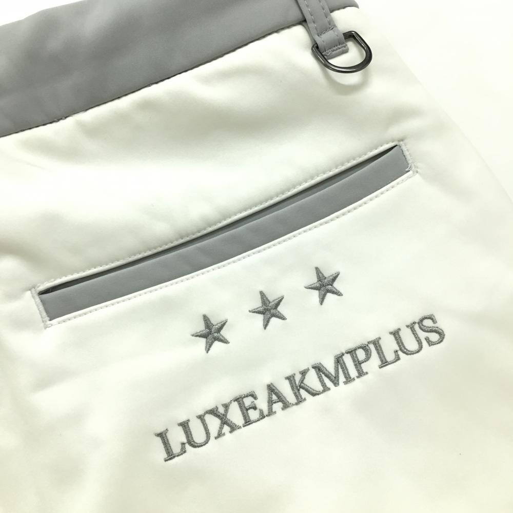 【美品】リュクスエイケイエムプラス パンツ 白×グレー 裏微起毛 ウエスト調整紐 メンズ XL ゴルフウェア LUXEAKMPLUS