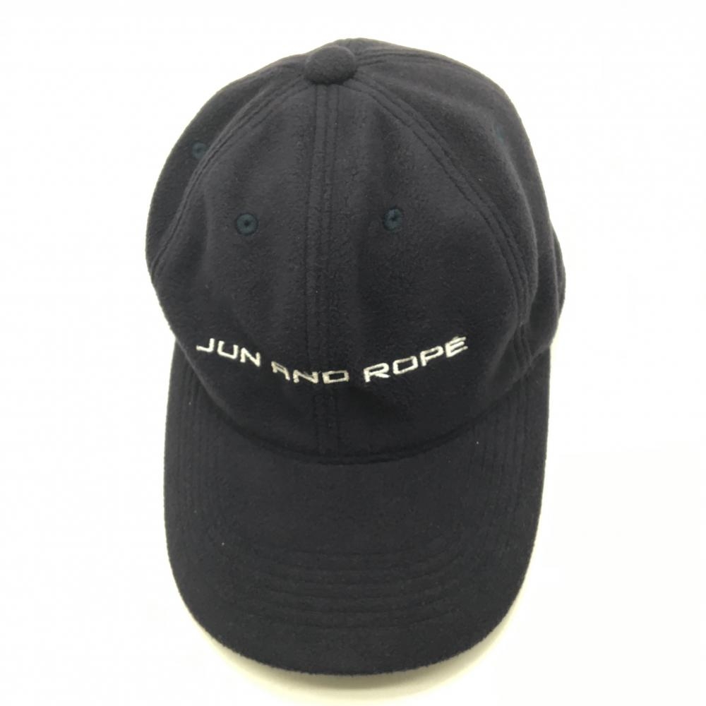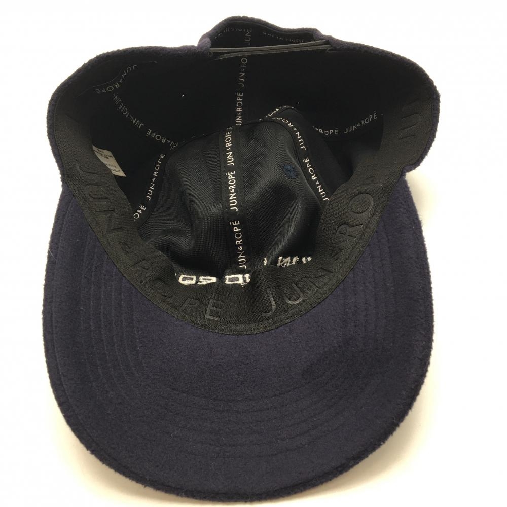 【美品】ジュンアンドロペ キャップ ネイビー×白 起毛 ロゴ刺しゅう ゴルフウェア JUN&ROPE