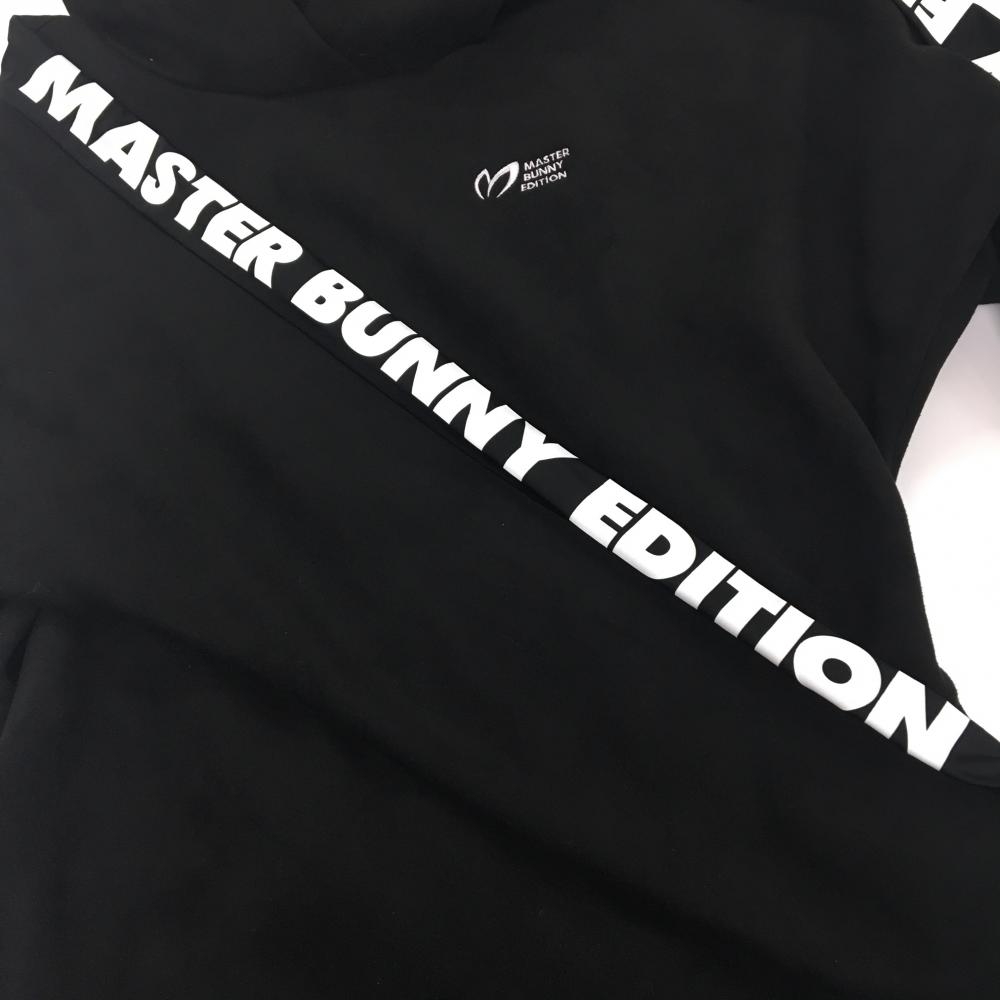 【超美品】マスターバニー パーカーワンピース 黒 表微起毛 ストレッチ 袖ロゴ レディース 0(S) ゴルフウェア MASTER BUNNY EDITION