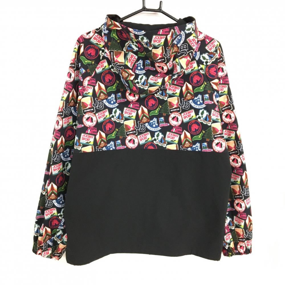 【超美品】ジャックバニー ジップパーカー 黒×マルチカラー 上部総柄 ダブルジップ メンズ 5(L) ゴルフウェア Jack Bunny
