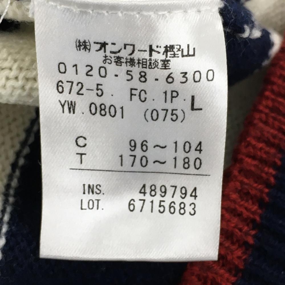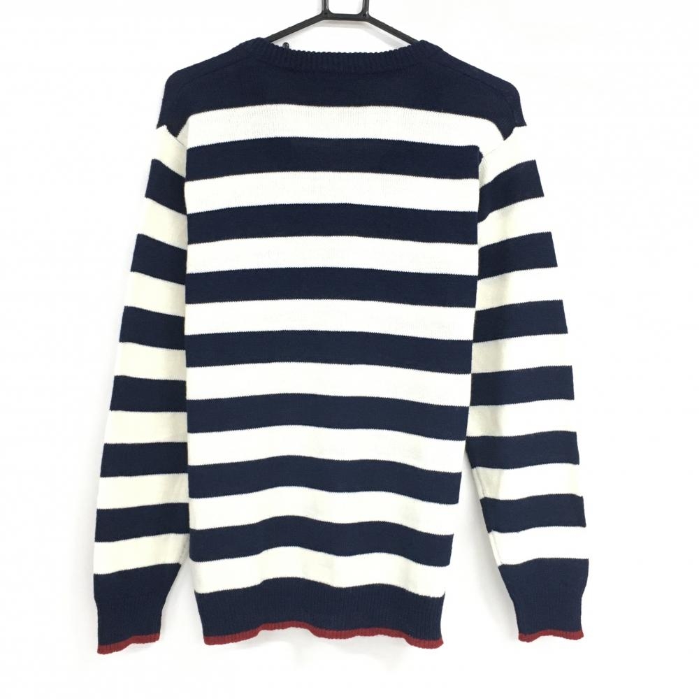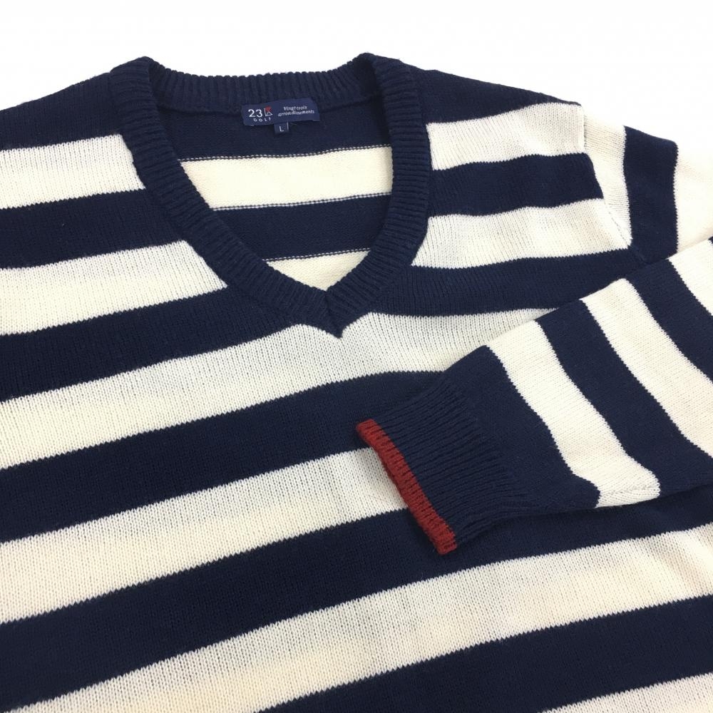【超美品】23区ゴルフ セーター 白系×ネイビー ボーダー Vネック ニット メンズ L ゴルフウェア 23区