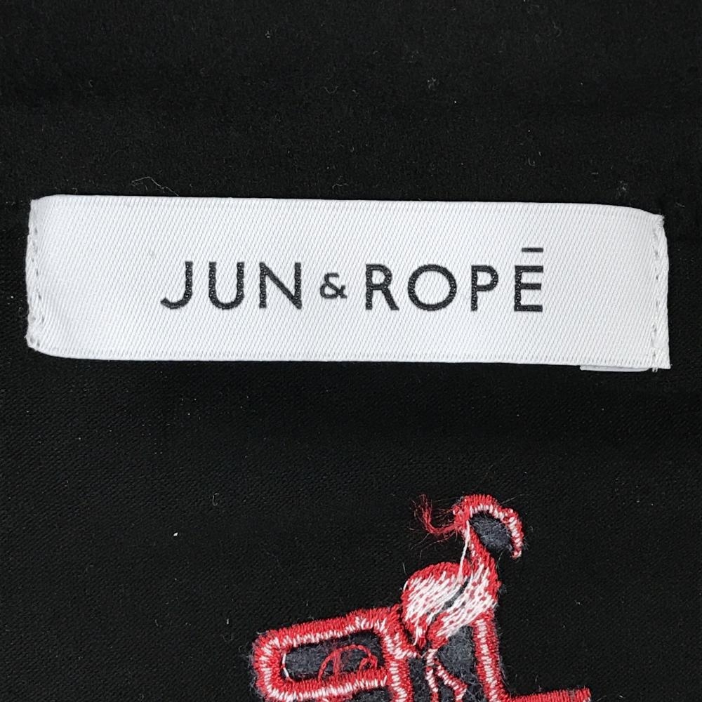 【美品】ジュンアンドロペ 長袖ハイネックシャツ 黒×レッド ハーフジップ 微起毛 胸ロゴ メンズ L ゴルフウェア JUN&ROPE