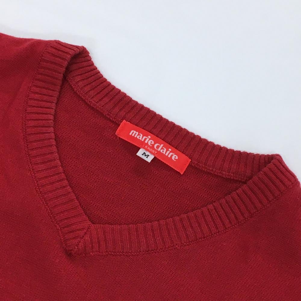 マリクレールスポール セーター レッド ロゴ白 ニット レディース M ゴルフウェア marie claire