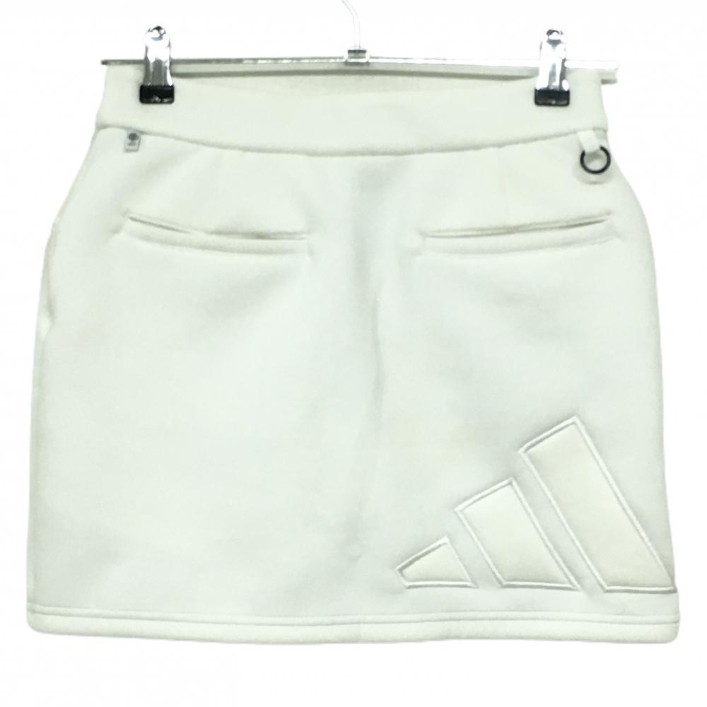 アディダス スカート 白 ロゴ黒 ダンボールニット 内側インナーパンツ ウエストゴム レディース M ゴルフウェア adidas