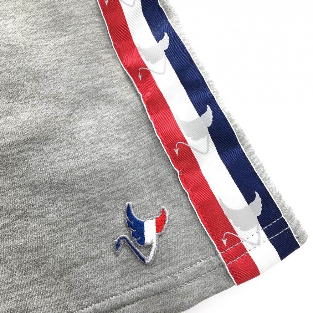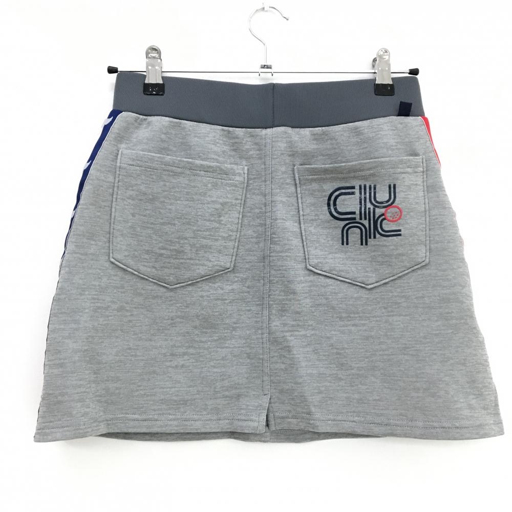 【超美品】クランク スカート 杢グレー×レッド サイドロゴトリコロール ウエストゴム レディース M ゴルフウェア CLUNK