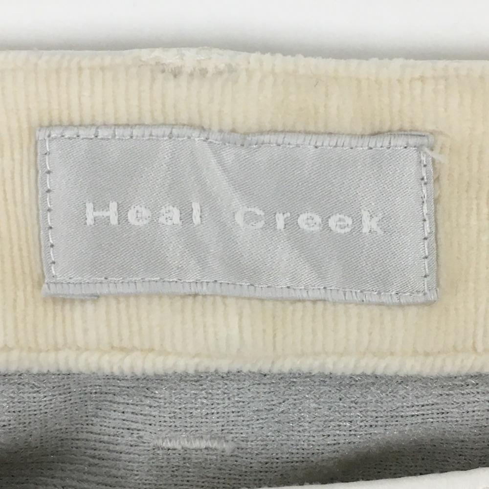 ヒールクリーク パンツ アイボリー×白 コーデュロイ風 バックロゴ刺しゅう 一部合皮 レディース 38(S) ゴルフウェア Heal Creek