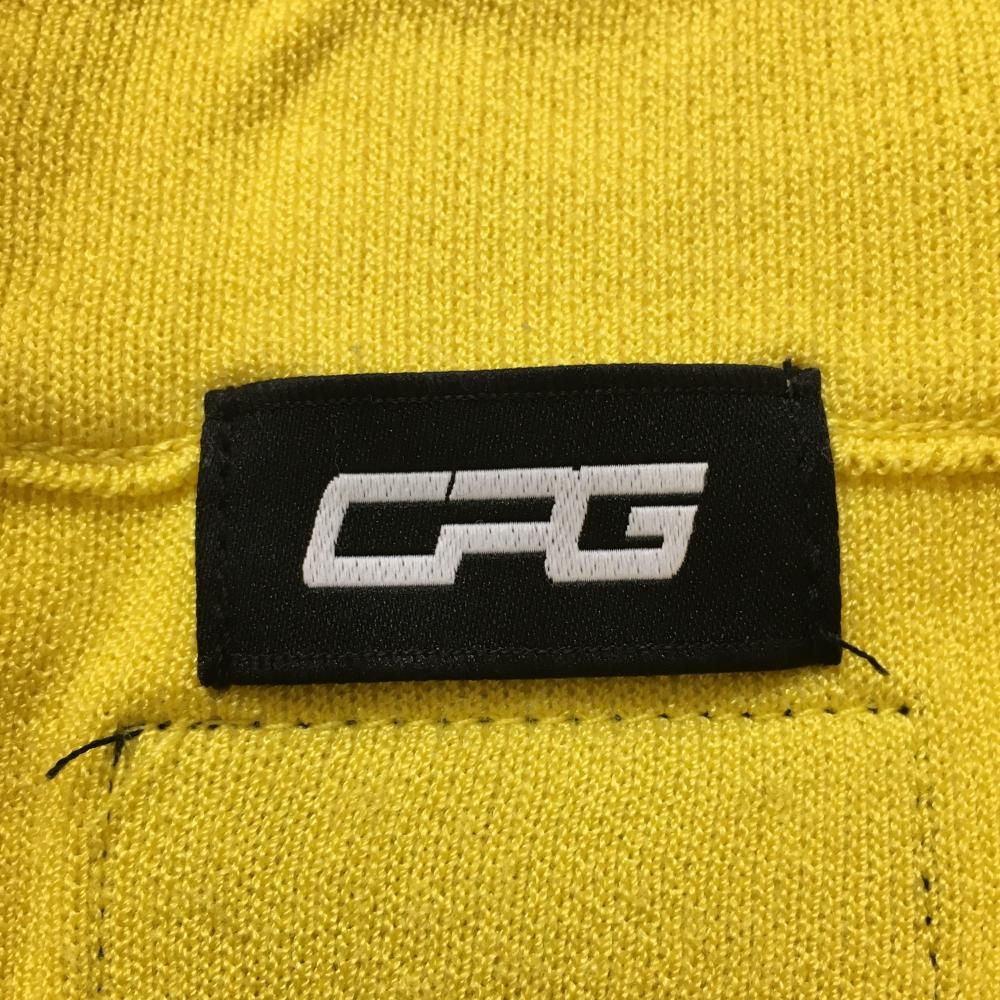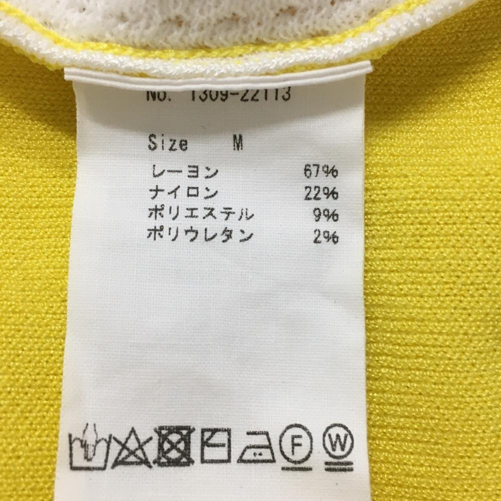 【美品】CPG ニットベスト イエロー×白 一部透かし編み ラインストーン レディース M ゴルフウェア CPG