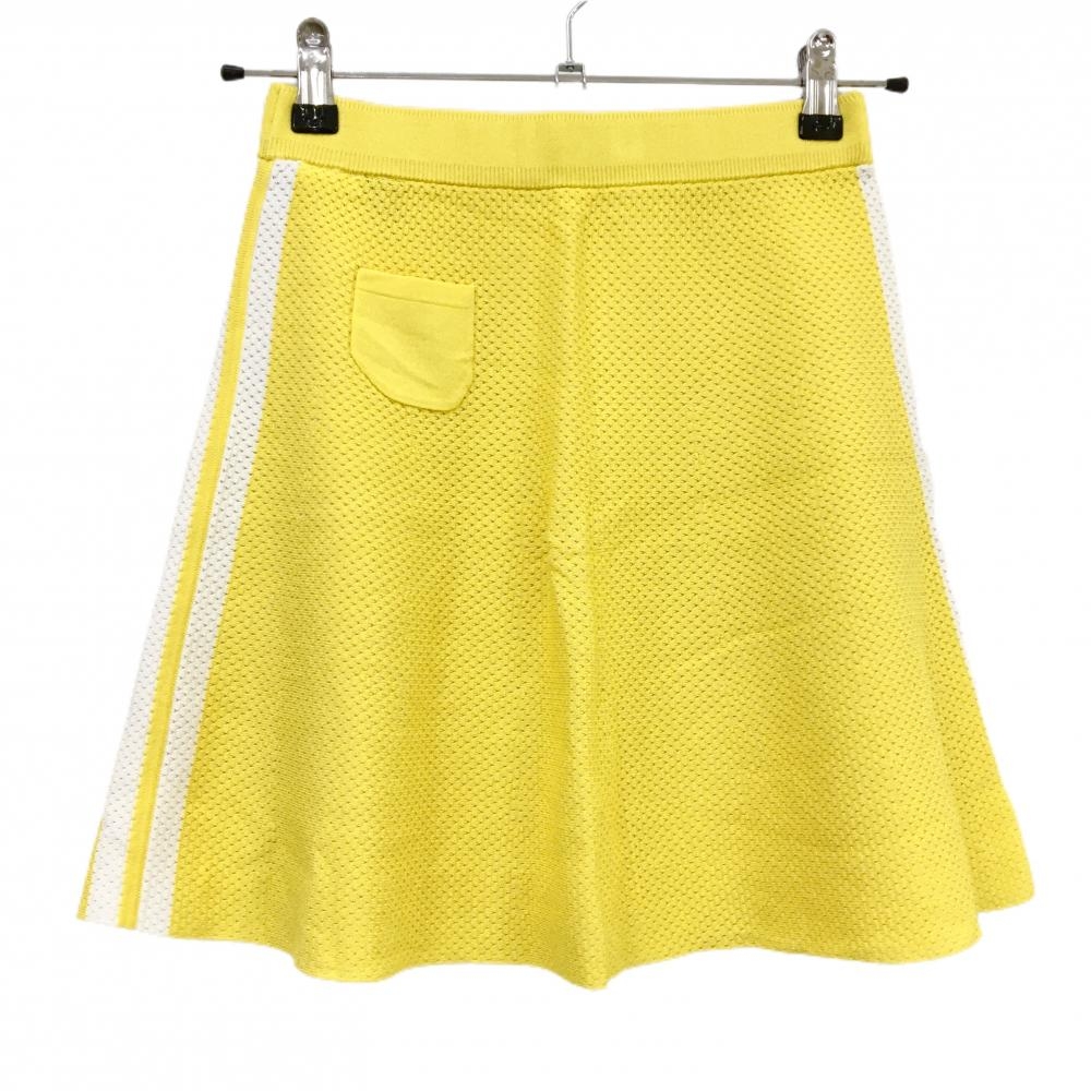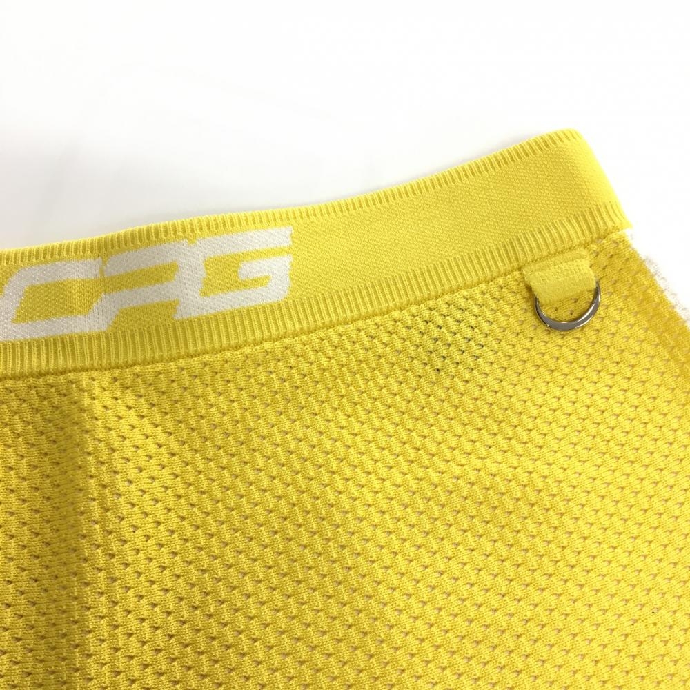 【美品】CPG ニットスカート イエロー×白 メッシュ調 ウエストゴム レディース S ゴルフウェア CPG