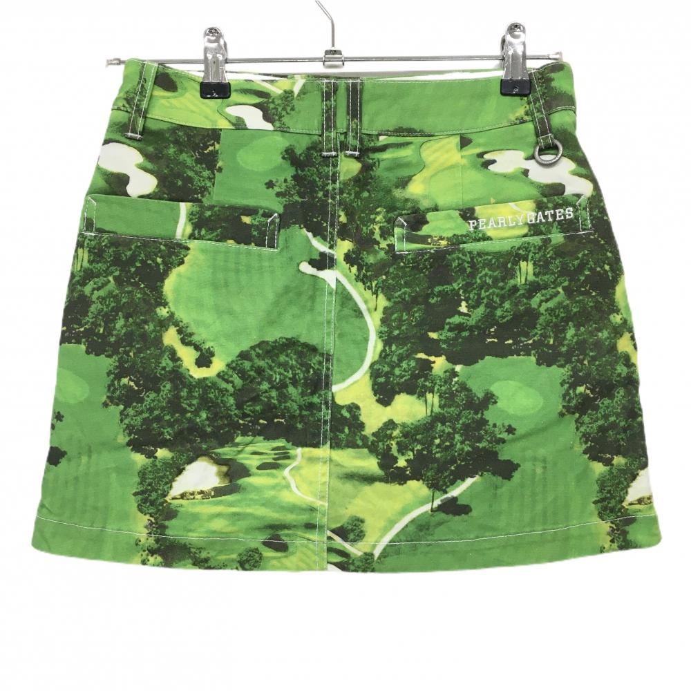 【超美品】パーリーゲイツ スカート グリーン×イエロー×黒 ゴルフ場柄 30周年 スマイル レディース 0(S) ゴルフウェア PEARLY GATES