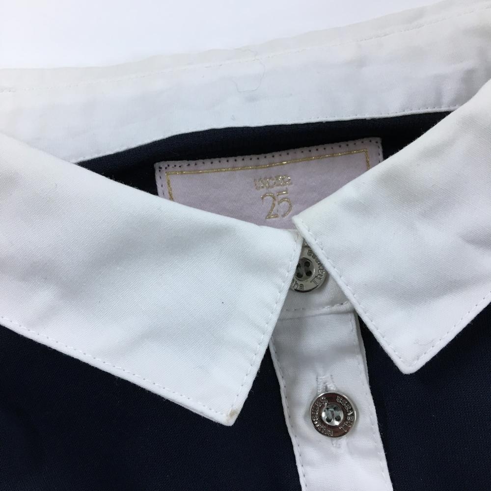 サマンサタバサUNDER25 長袖ポロシャツ ネイビー×白 バックロゴ レディース M ゴルフウェア Samantha Thavasa