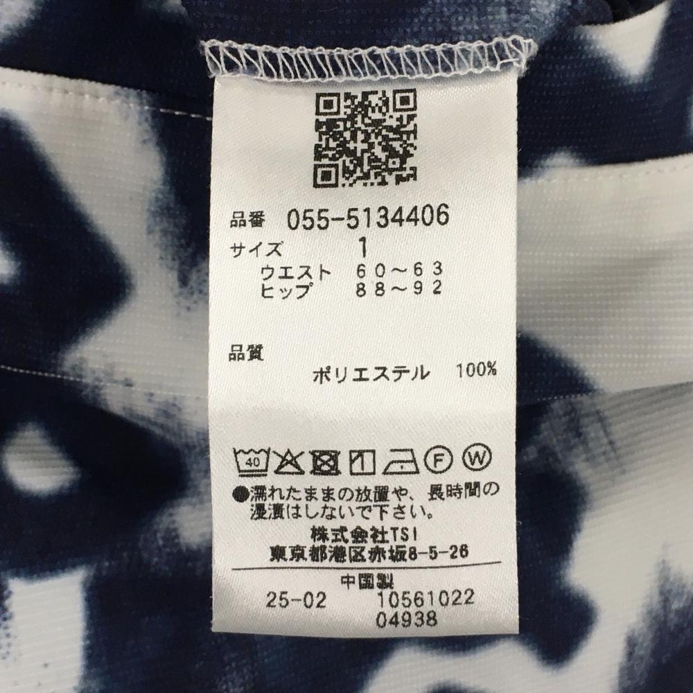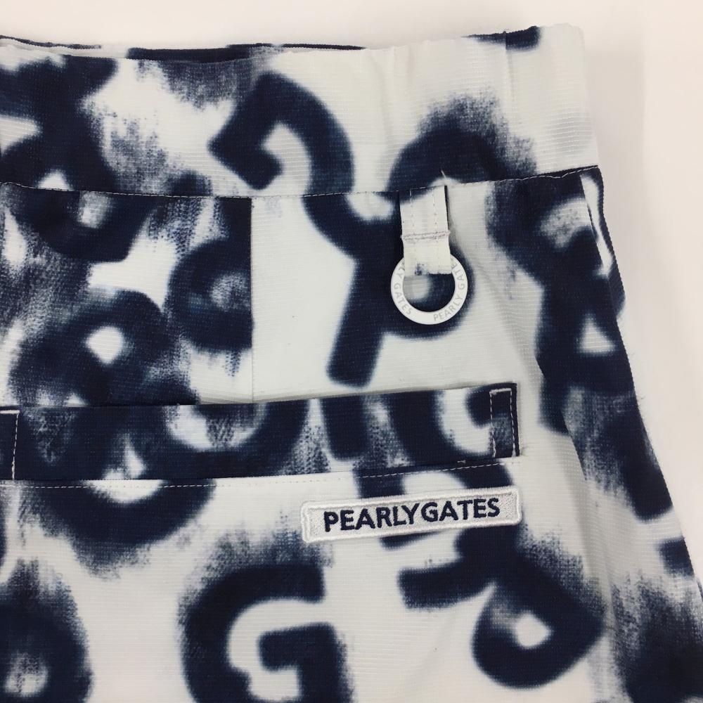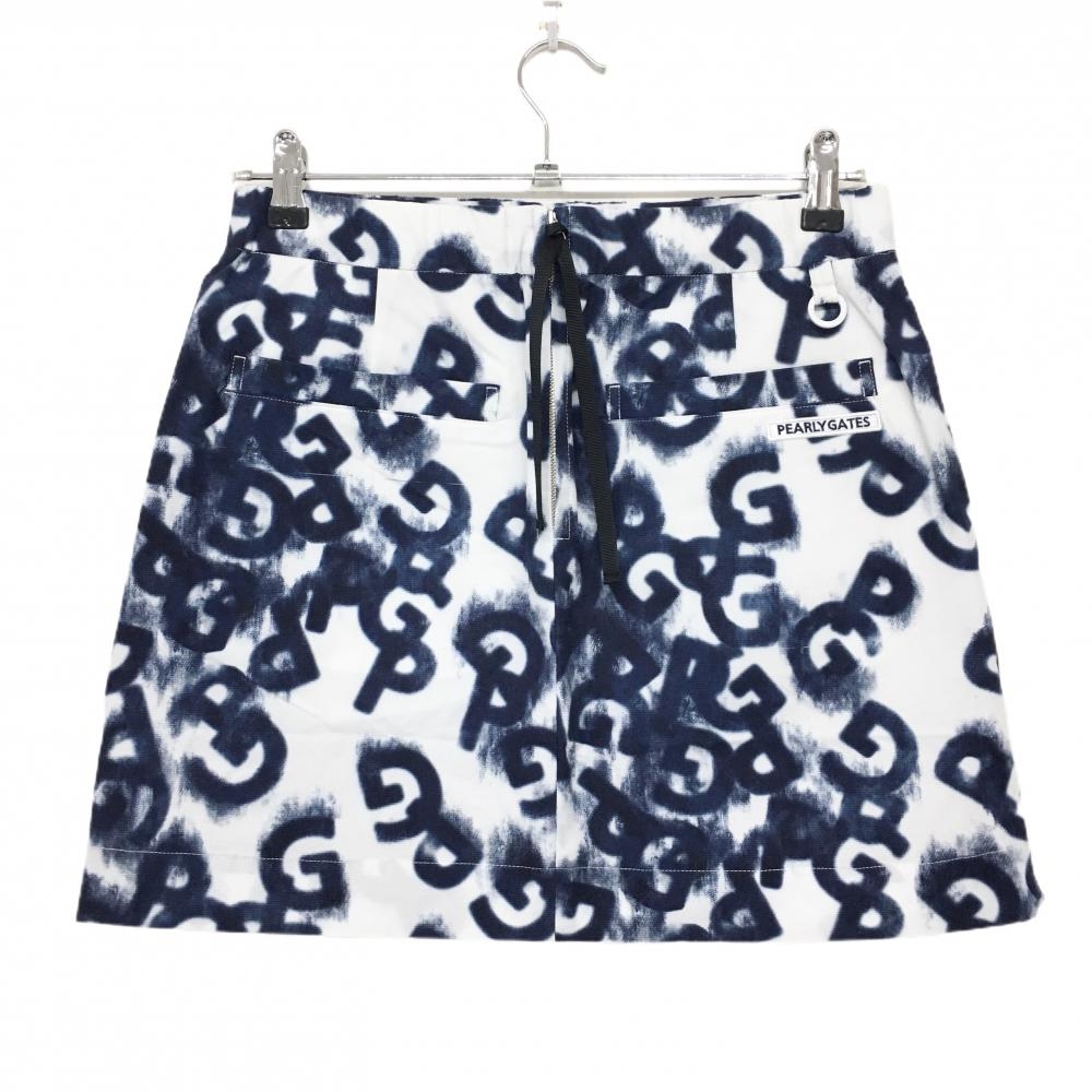 【超美品】パーリーゲイツ スカート 白×ネイビー ロゴ総柄 ウエストゴム レディース 1(M) ゴルフウェア 2025年モデル PEARLY GATES