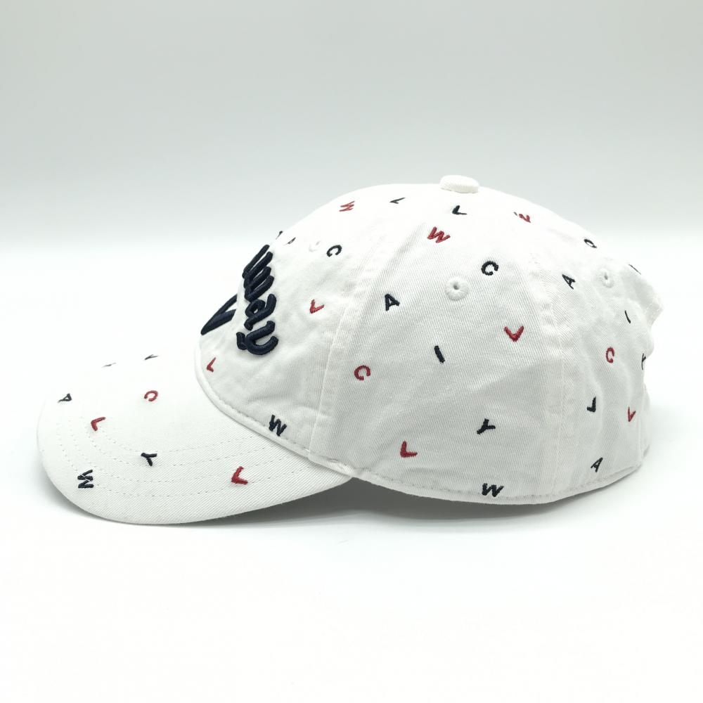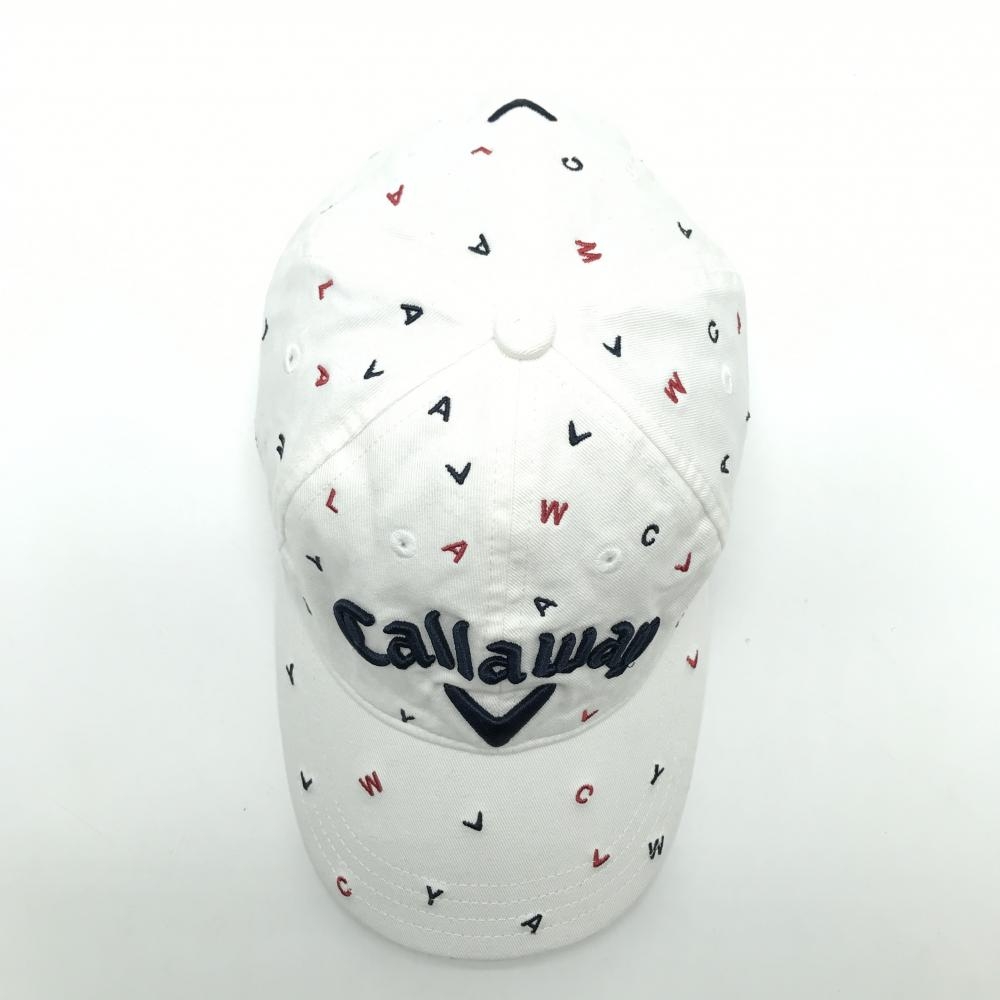 【美品】キャロウェイ キャップ 白×ネイビー ロゴ総柄 立体ロゴ FR ゴルフウェア Callaway