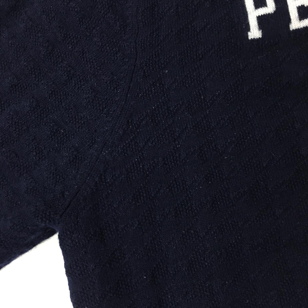 【美品】パーリーゲイツ セーター ネイビー ニコちゃん スマイル ウール混 ニット 裏地付 メンズ 5(L) ゴルフウェア PEARLY GATES