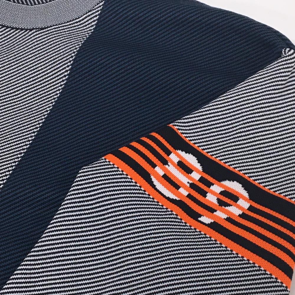 【美品】パーリーゲイツ セーター 白×黒×オレンジ 斜めストライプ調 ニット メンズ 5(L) ゴルフウェア 2024年モデル PEARLY GATES