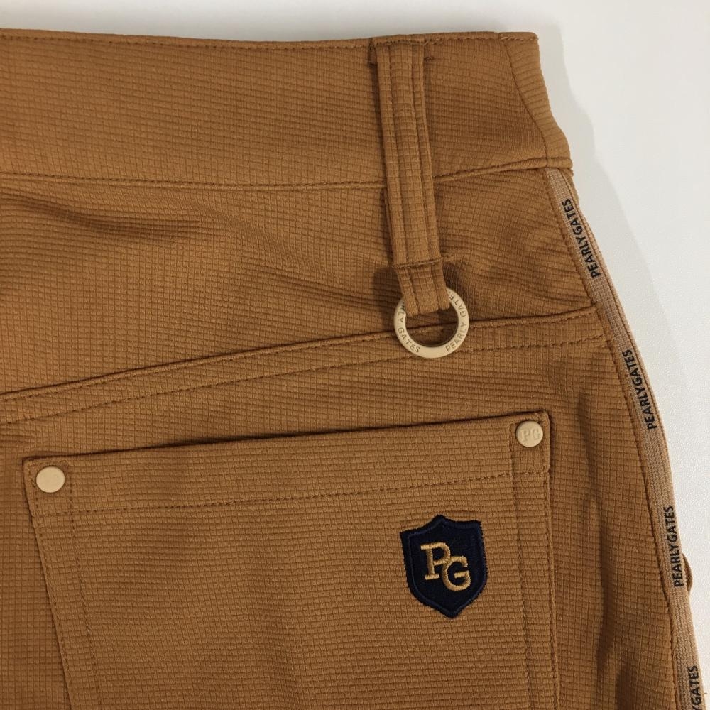 【超美品】パーリーゲイツ スカート ライトブラウン 地模様 ロゴ刺しゅう ストレッチ レディース 00(XS) ゴルフウェア PEARLY GATES