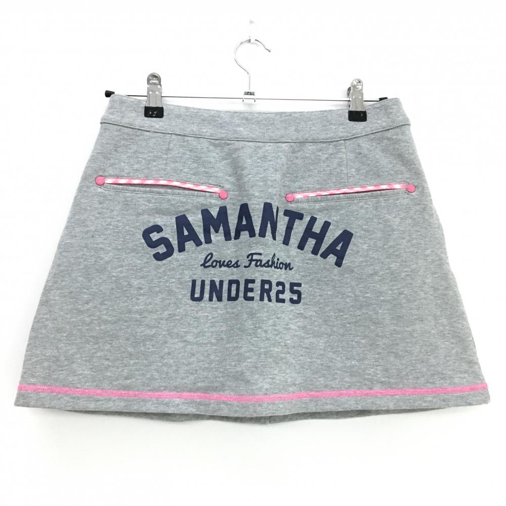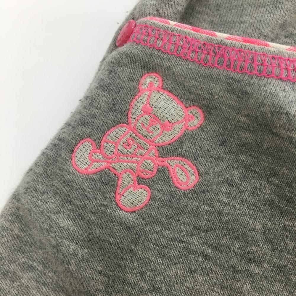 サマンサタバサUNDER25 スウェットスカート 杢グレー×ピンク ベア刺しゅう ウエスト調節紐 レディース M ゴルフウェア Samantha Thavasa