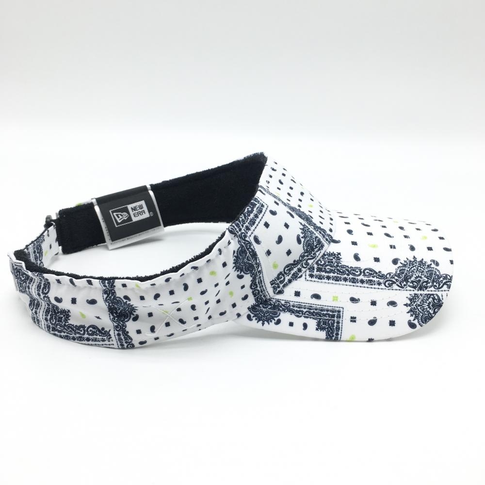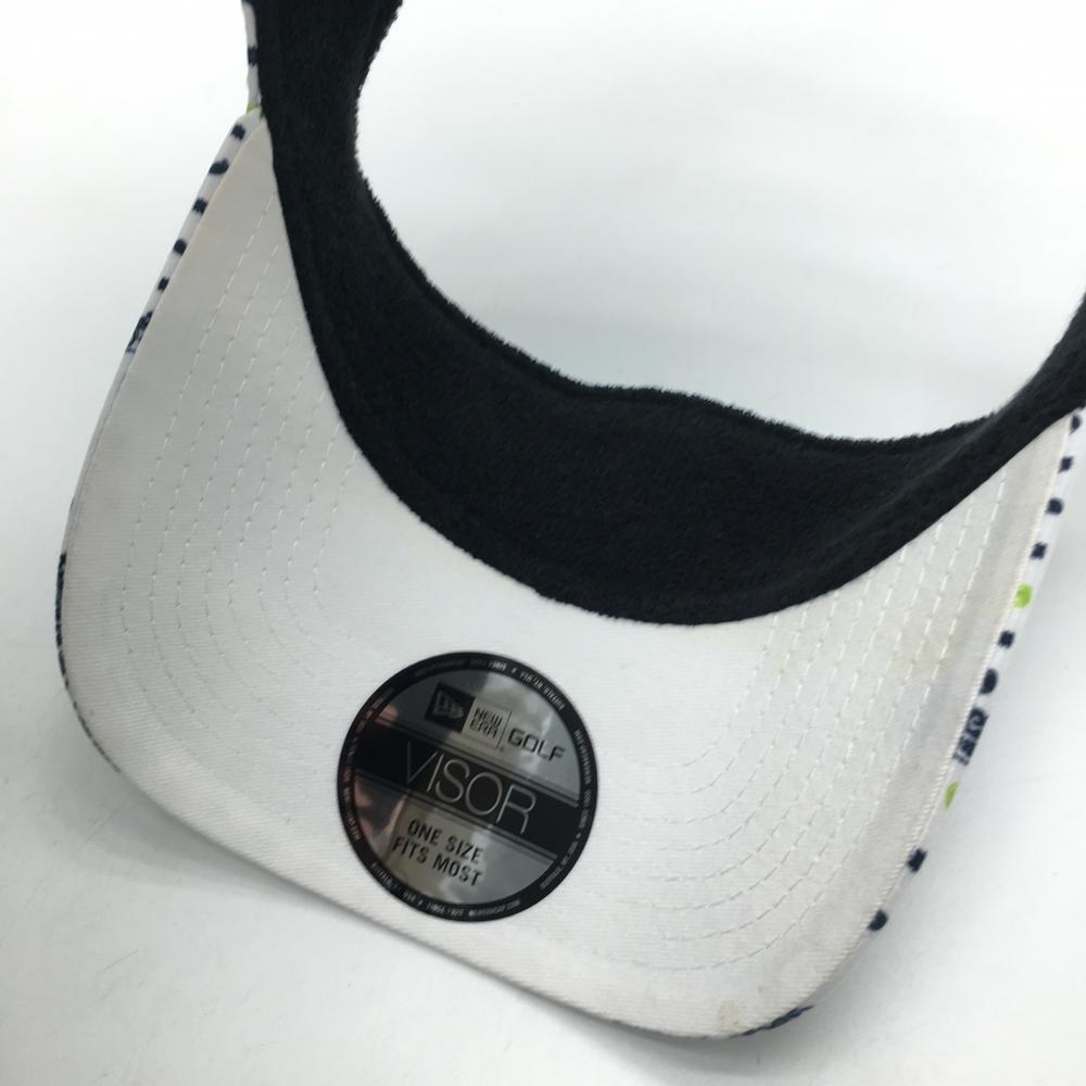 【美品】ニューエラ サンバイザー 白×ネイビー 総柄 ゴルフウェア New Era