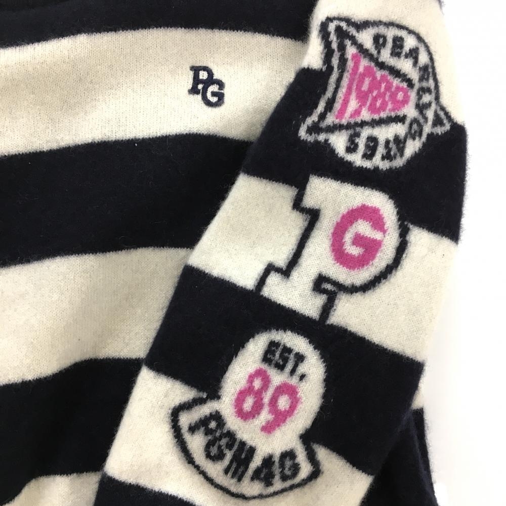 【超美品】パーリーゲイツ 裏地付セーター ネイビー×白 ボーダー カシミヤ100% ニット レディース 0(S) ゴルフウェア PEARLY GATES