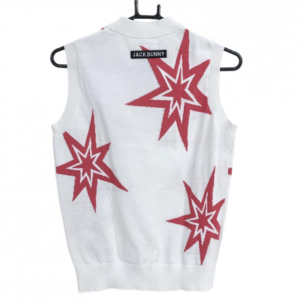 【超美品】ジャックバニー ハイネックベスト 白×レッド 星柄 レディース 1(M) ゴルフウェア Jack Bunny