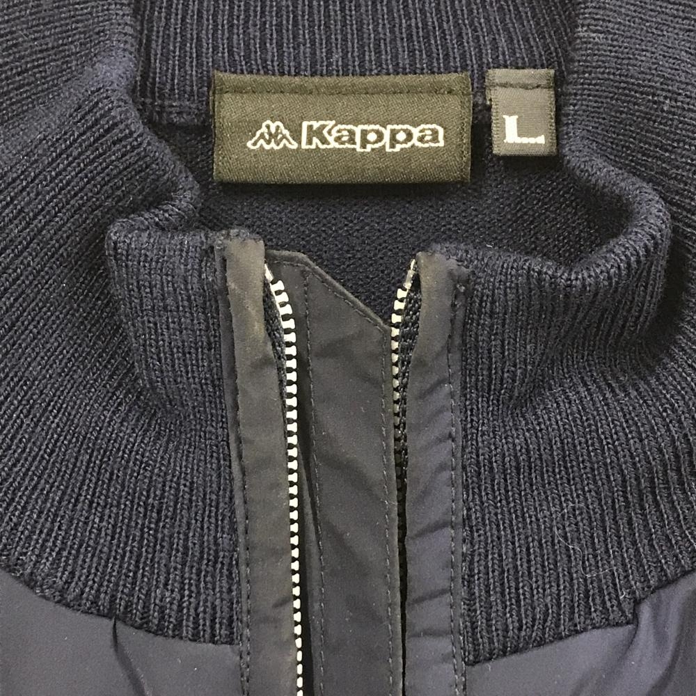 カッパ 異素材アウターベスト ネイビー ロゴプリント 前身頃中綿 背面ニット ウール混 メンズ L ゴルフウェア Kappa