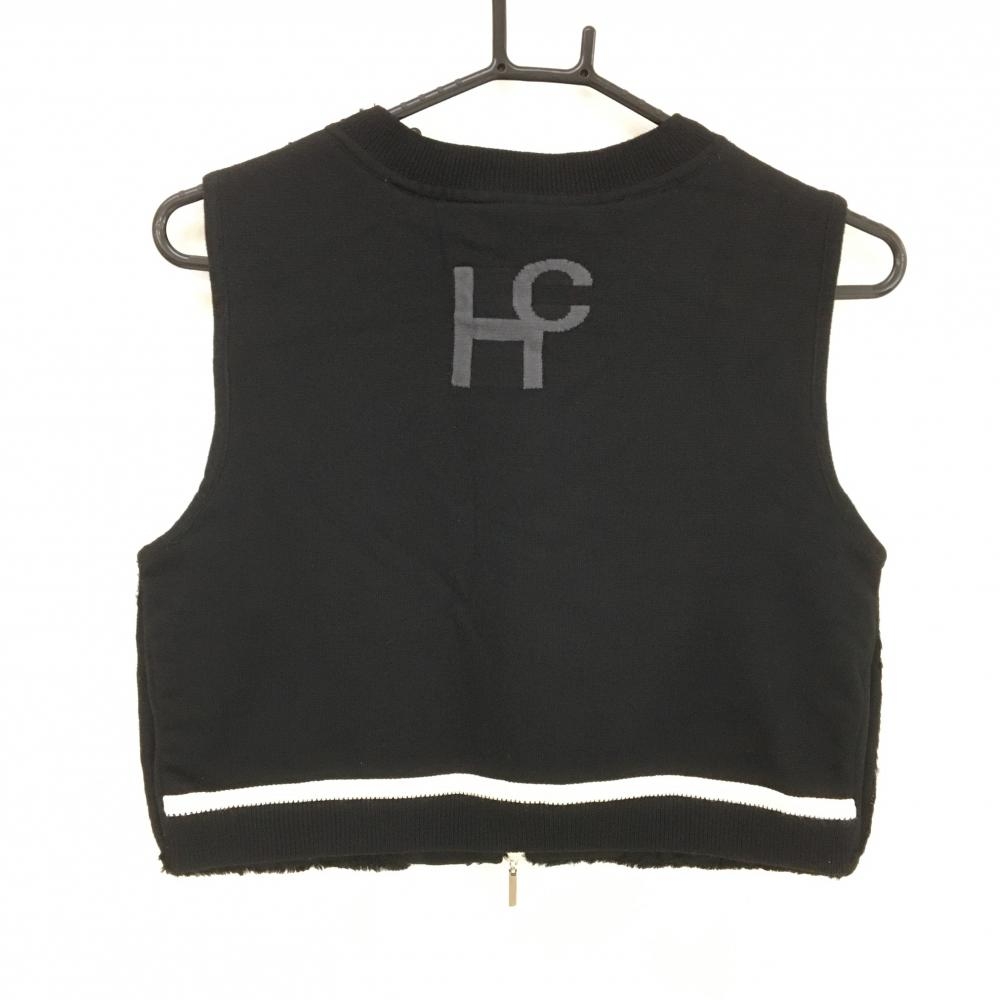 【超美品】ヒールクリーク 中綿切替ベスト 黒 前身頃ファー ダブルジップ ニット レディース 40(M) ゴルフウェア Heal Creek