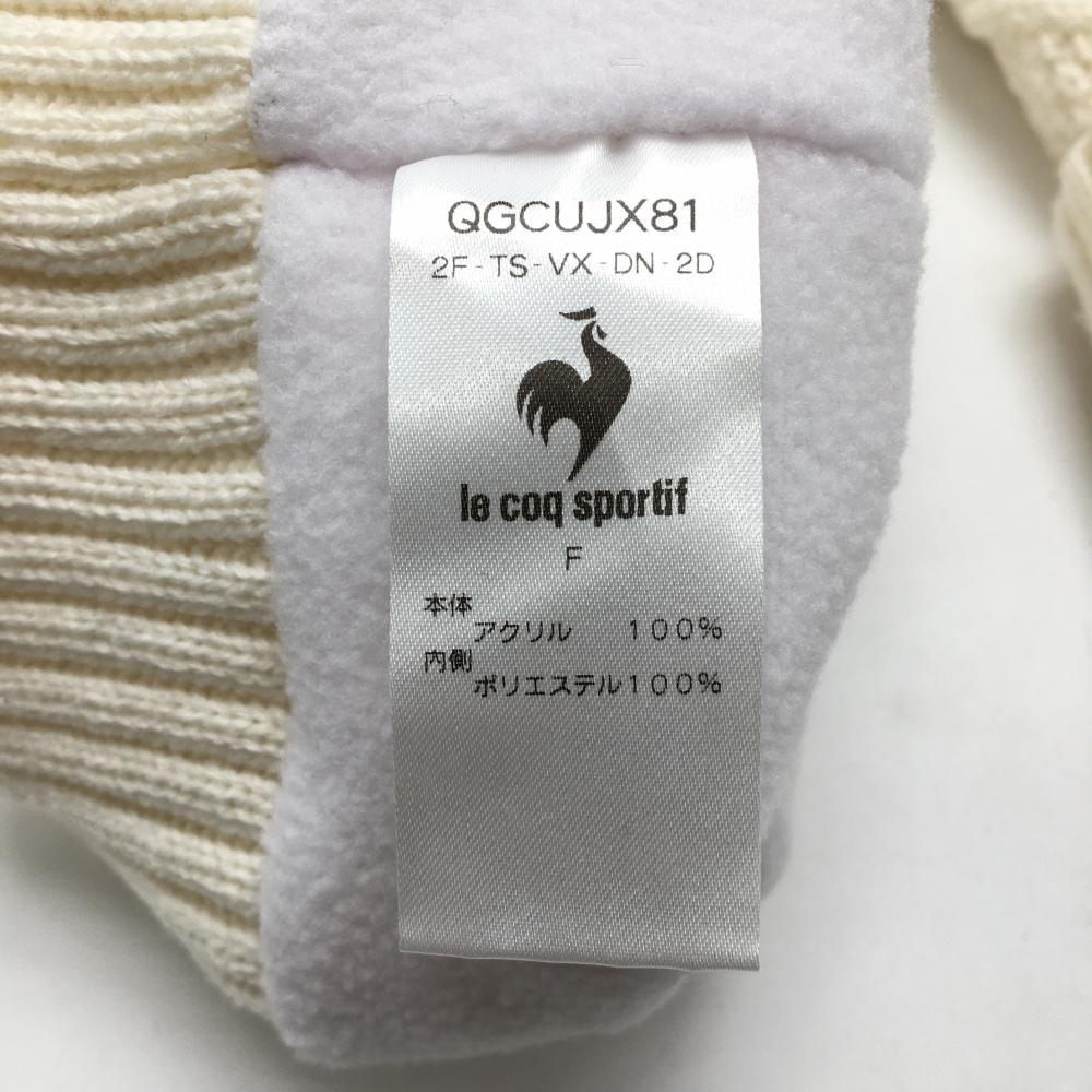 ルコック ニットレッグウォーマー アイボリー ロゴ刺しゅう ケーブル編み 裏起毛 レディース F ゴルフウェア le coq sportif