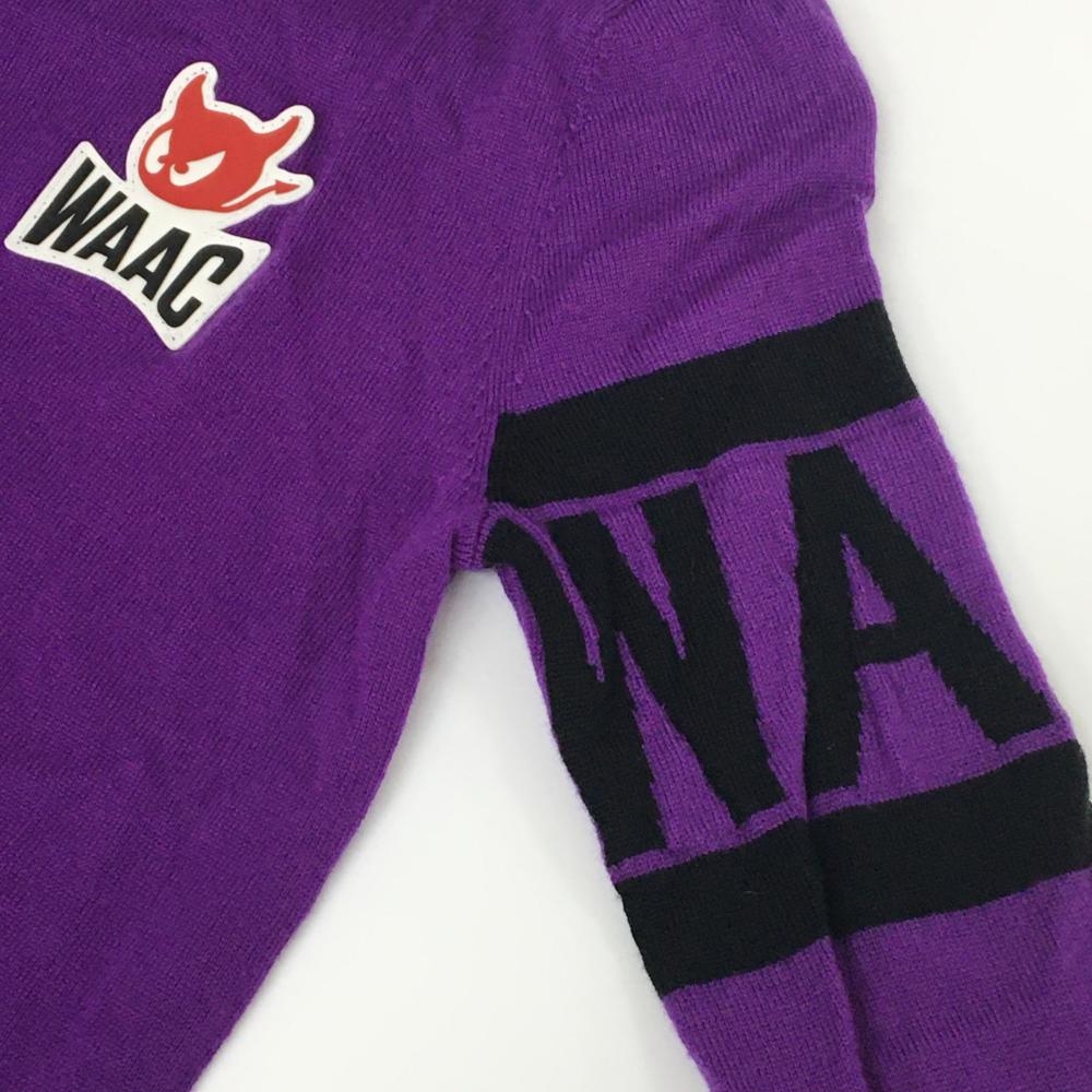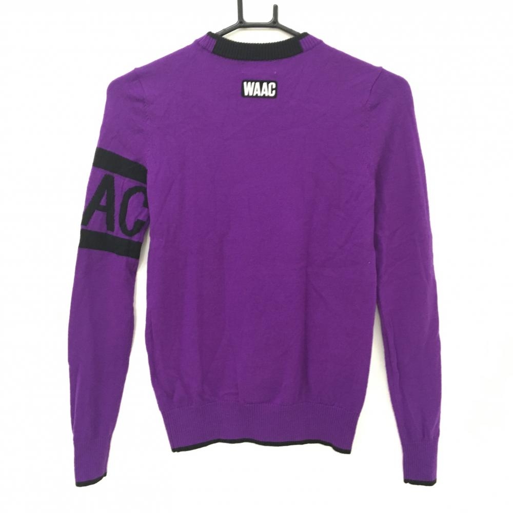 【美品】ワック セーター パープル×黒 ロゴワッペン 羊毛100% ニット レディース 1(S) ゴルフウェア WAAC